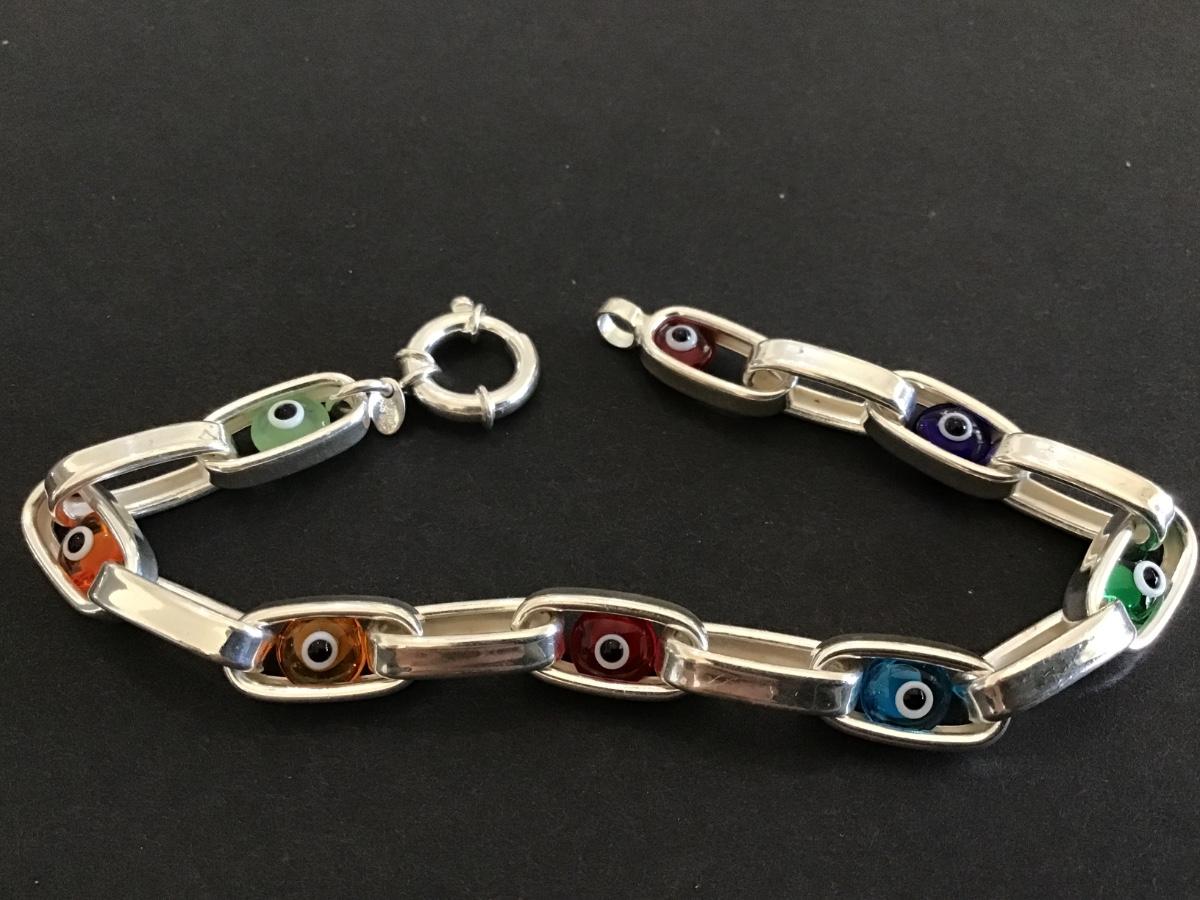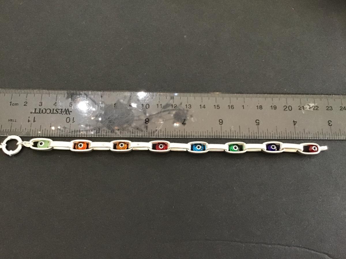 Marked Turkey 925 Silver Glass Evil Eye Bracelet