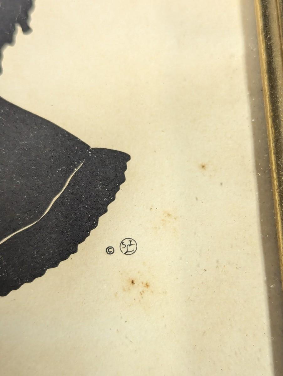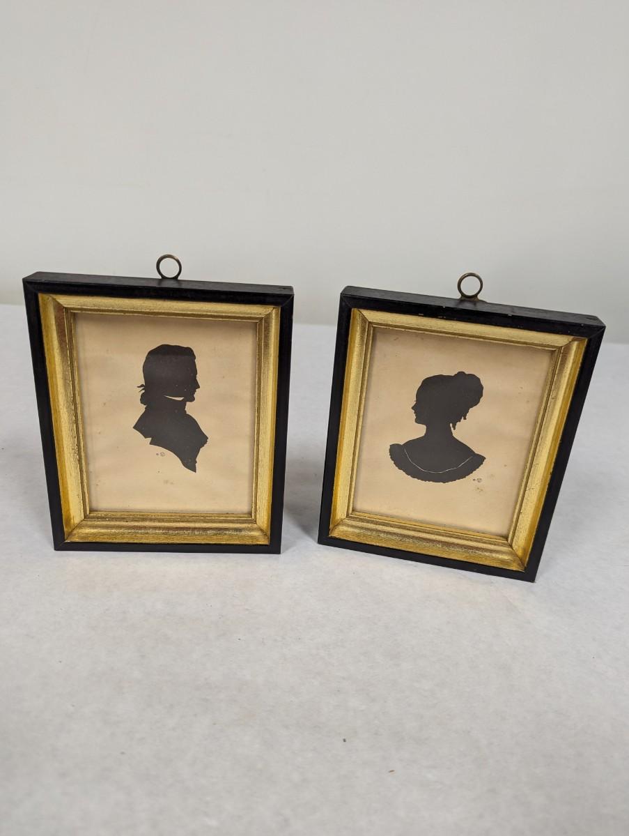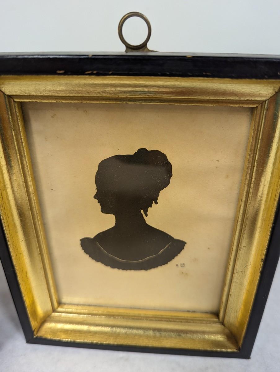 Marked Vintage Pair Framed Cut Paper Cameo Silhouette Portraits