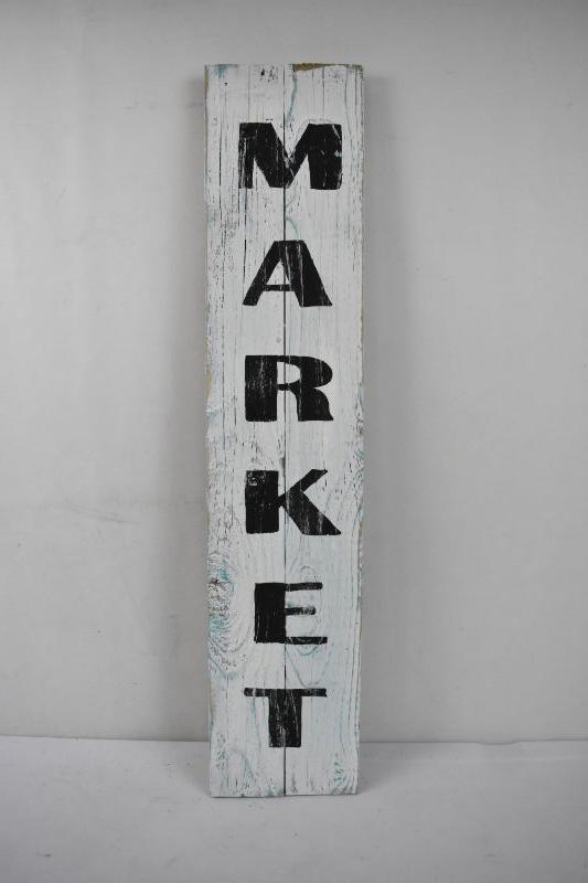 MARKET #2 Rustic Wooden Wall Decor Sign Aqua & Black 6.5" x 31"
