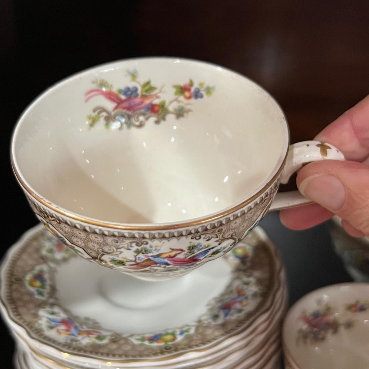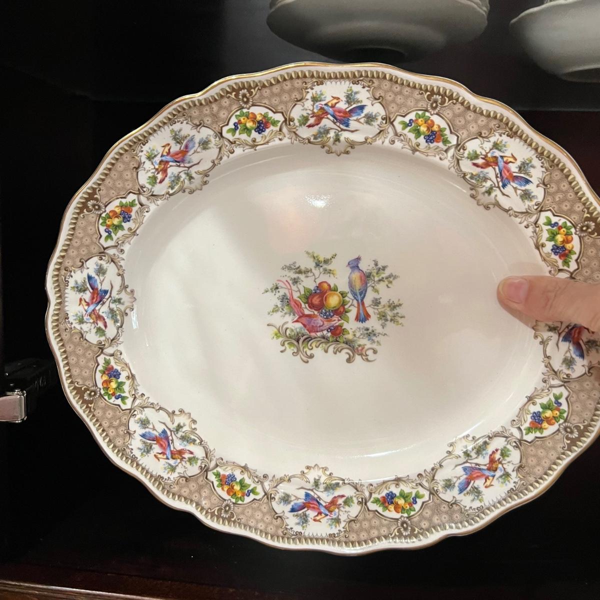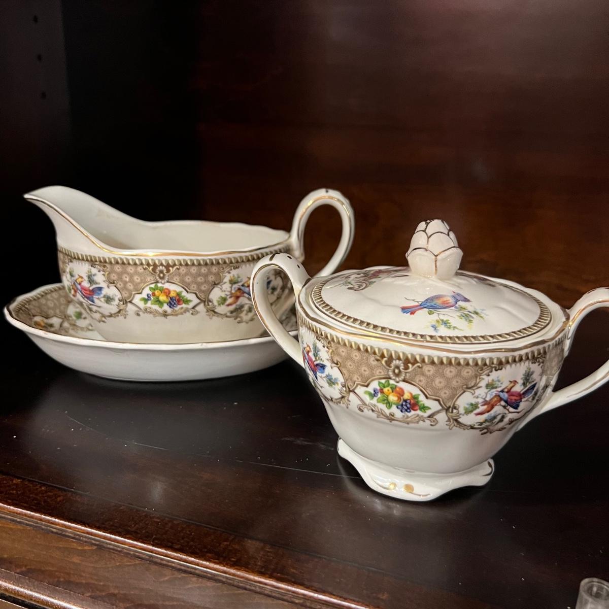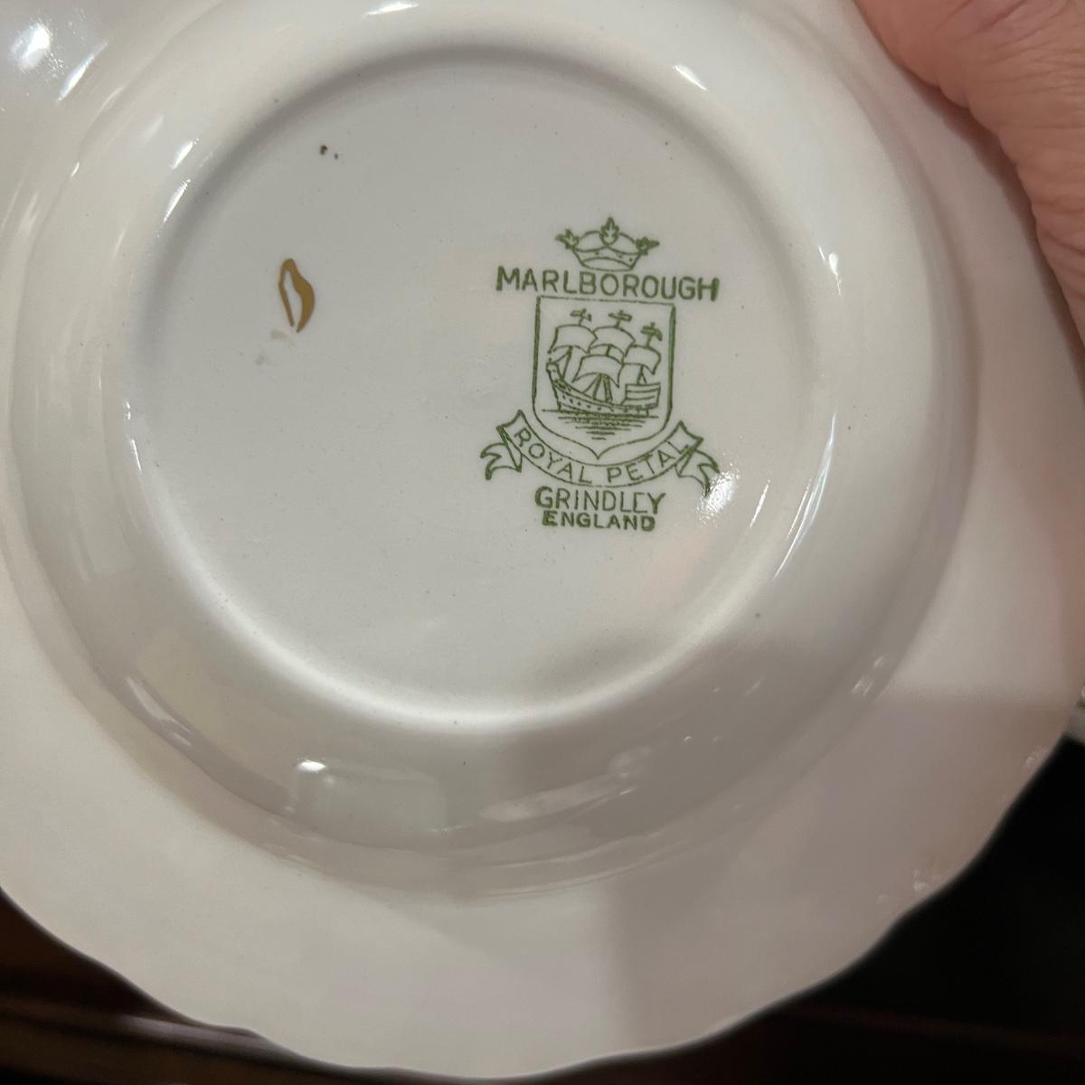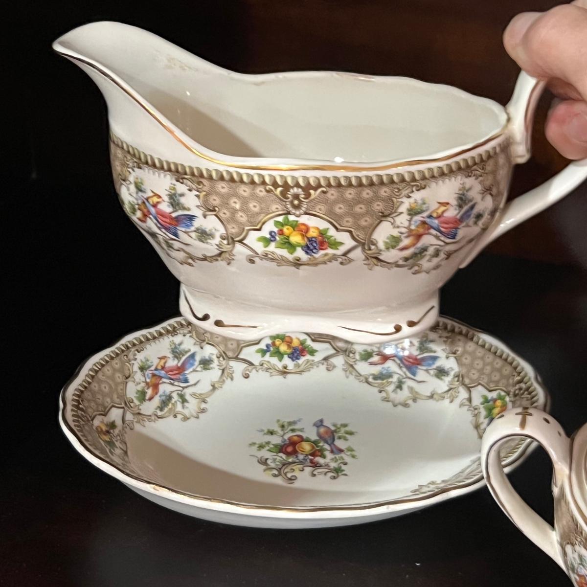 This Marlborough China dinnerware 81 piece set is the “˜Royal Petal’ design. There are 12 pieces of - dinner plates (10”), salad plates, bread plates, dessert bowls, small bowls, saucers (only seven cups) plus a large and a medium platter, gravy boat/dish and sugar bowl.. A few pieces of each have crazing or discoloration, see images. All in all, not including the blemishes pieces, this would be a ten person setting, minus cups as there are only seven.