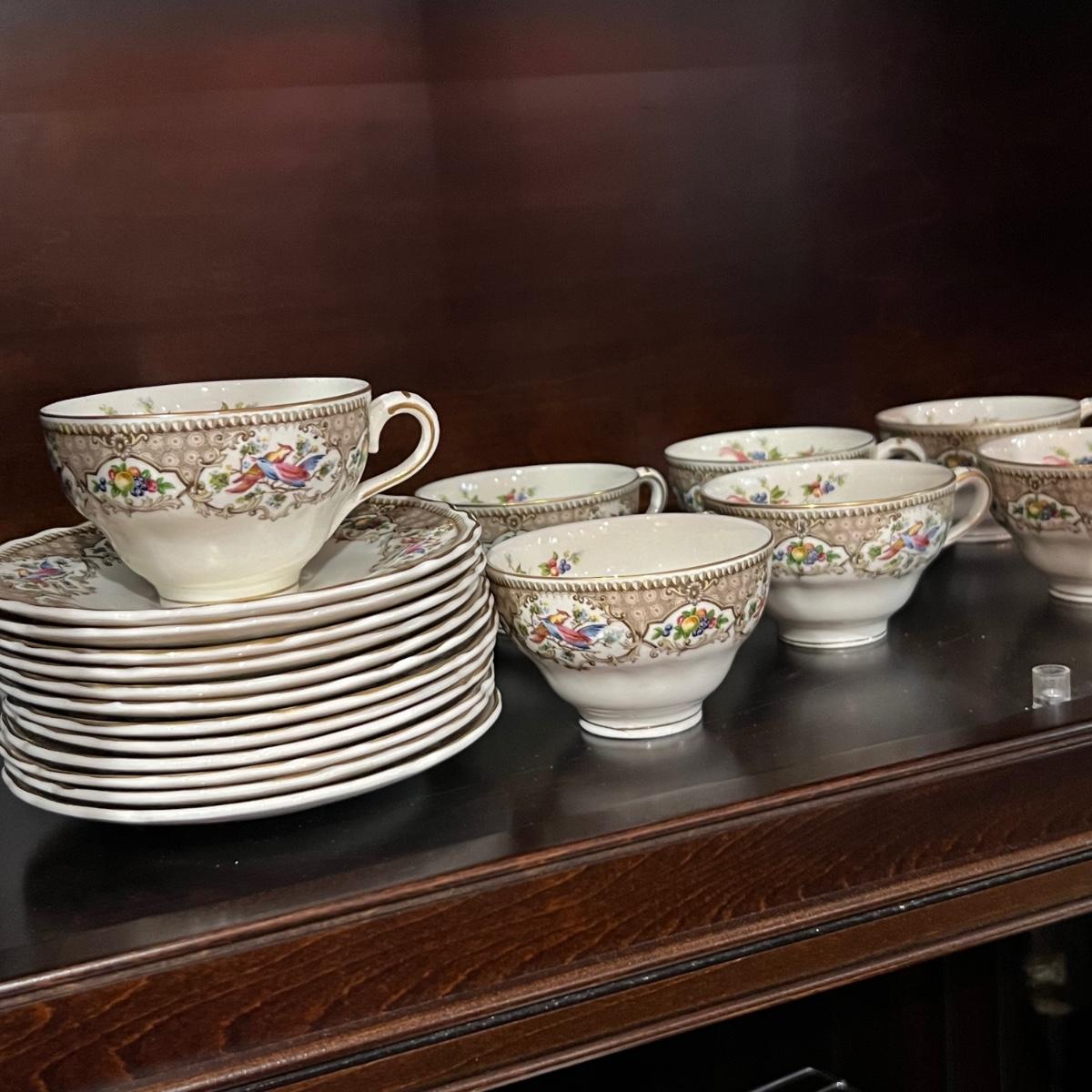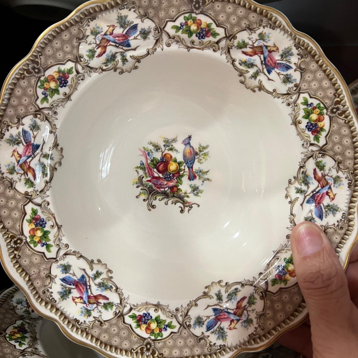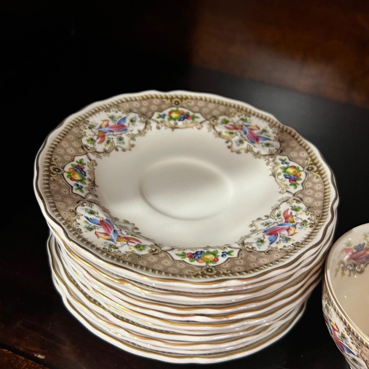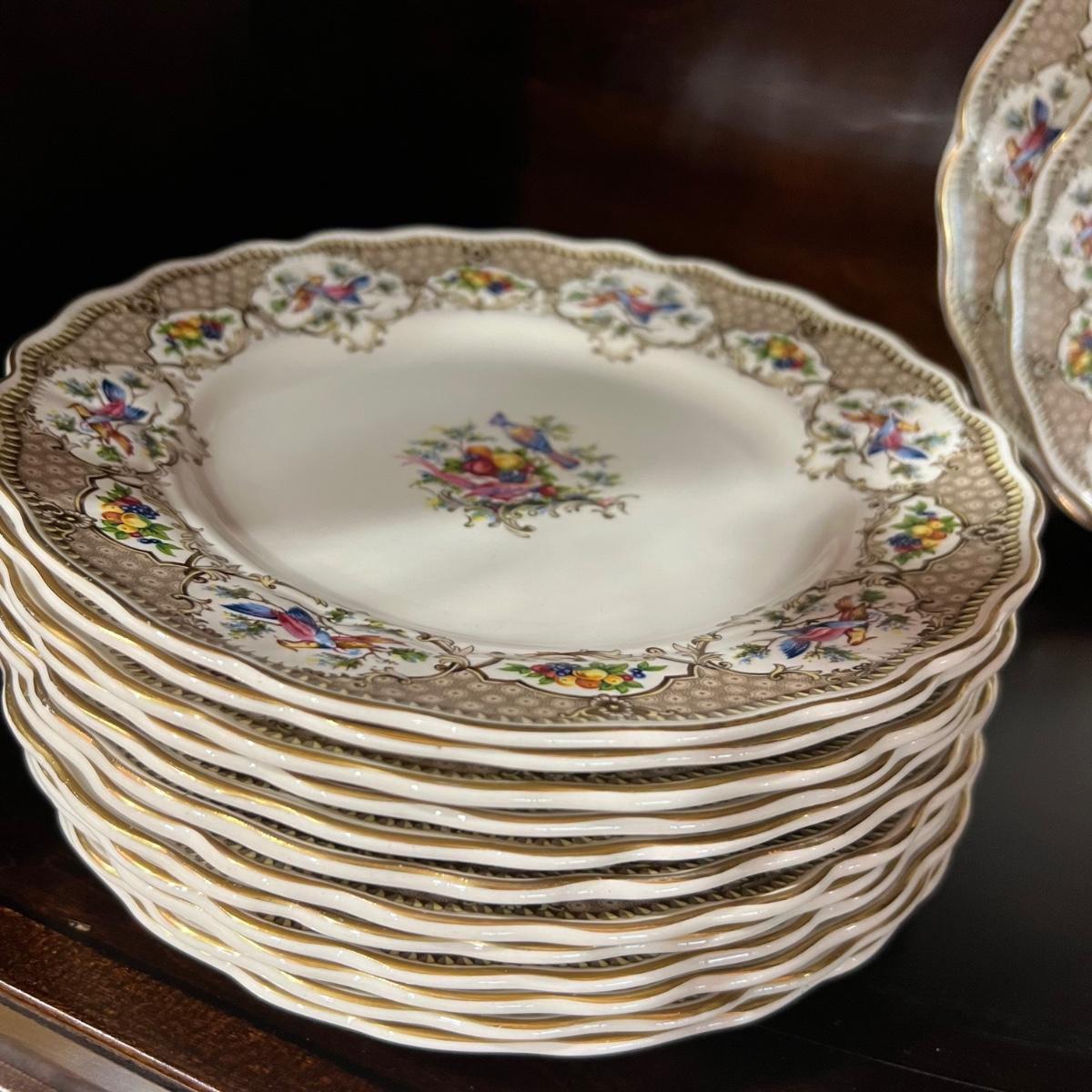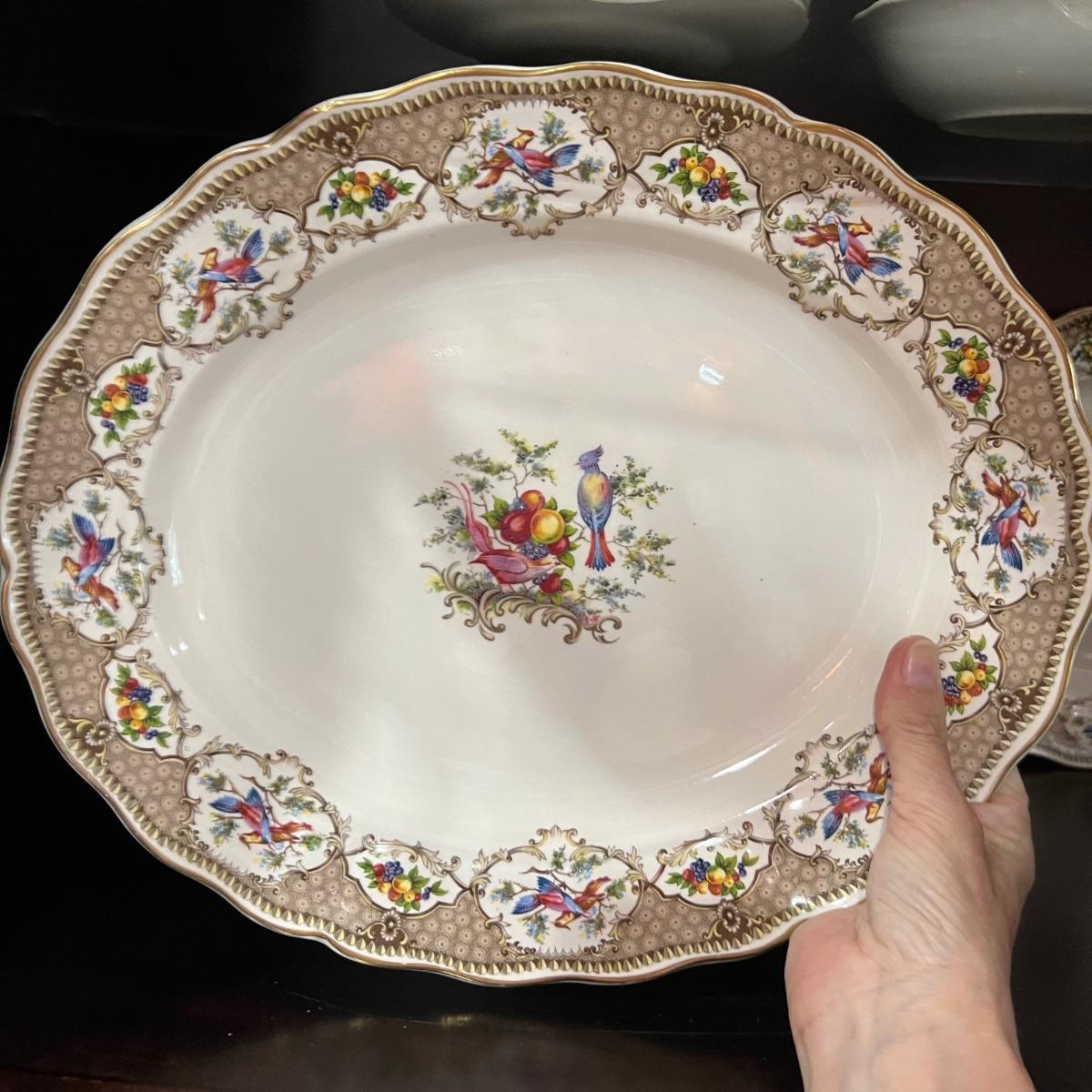 This Marlborough China dinnerware 81 piece set is the “˜Royal Petal’ design. There are 12 pieces of - dinner plates (10”), salad plates, bread plates, dessert bowls, small bowls, saucers (only seven cups) plus a large and a medium platter, gravy boat/dish and sugar bowl.. A few pieces of each have crazing or discoloration, see images. All in all, not including the blemishes pieces, this would be a ten person setting, minus cups as there are only seven.