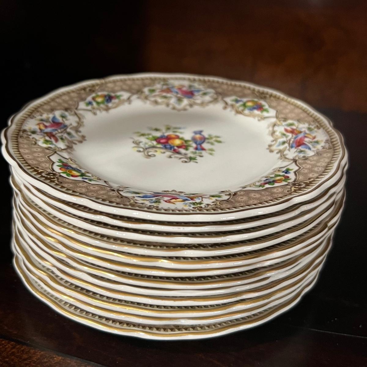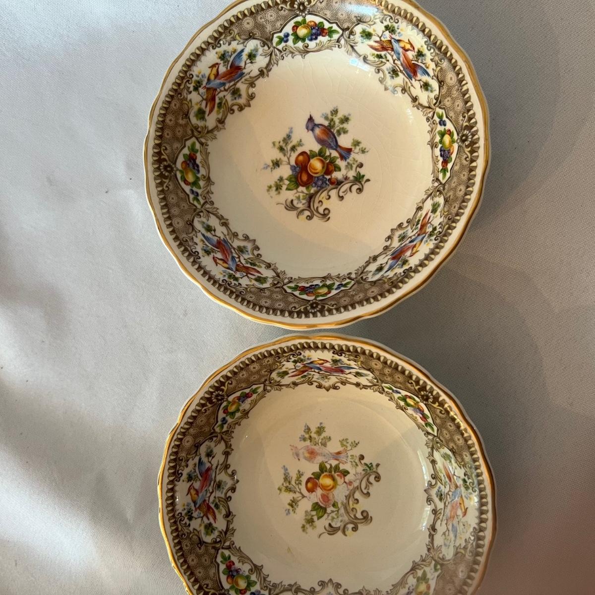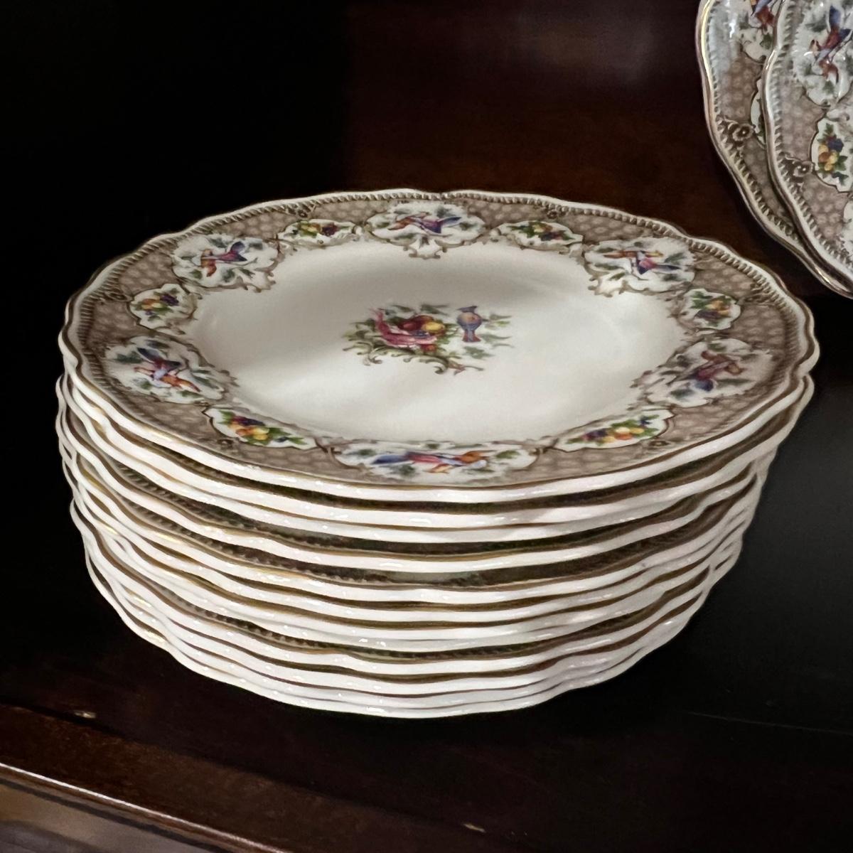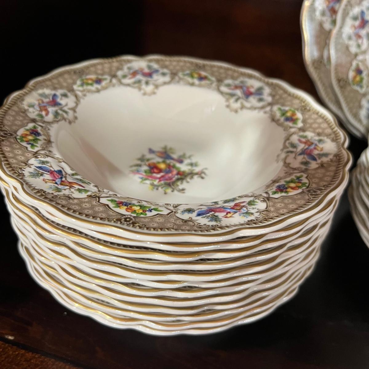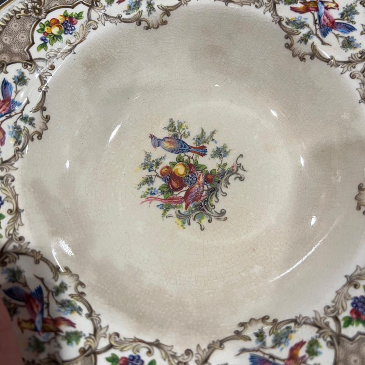 This Marlborough China dinnerware 81 piece set is the “˜Royal Petal’ design. There are 12 pieces of - dinner plates (10”), salad plates, bread plates, dessert bowls, small bowls, saucers (only seven cups) plus a large and a medium platter, gravy boat/dish and sugar bowl.. A few pieces of each have crazing or discoloration, see images. All in all, not including the blemishes pieces, this would be a ten person setting, minus cups as there are only seven.