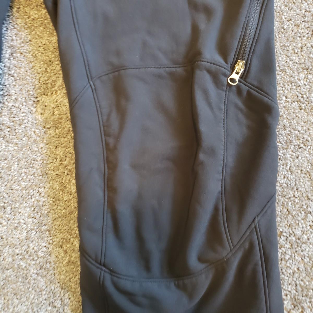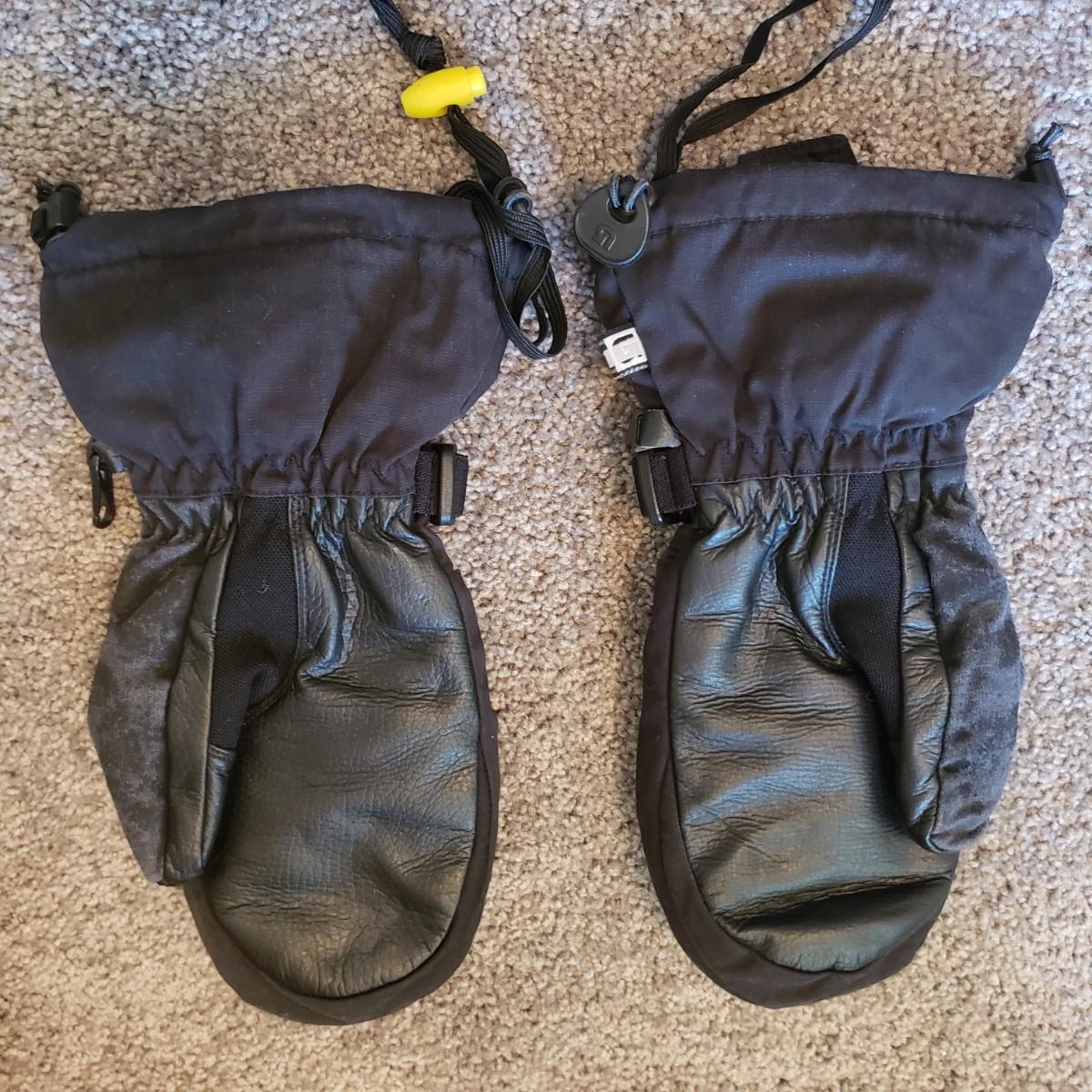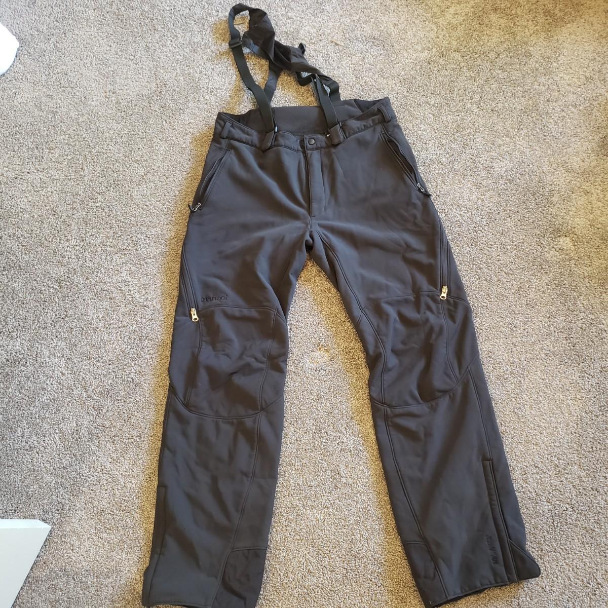 This three piece lot features Marmot Windstopper bibs, Burton mittens and Polartec insulated pants. The Marmot pants are women's large. See pictures for the many details. The Burton mittens say women's medium. There is some wear off the thumbs, see pictures. The Polartec fleece pants had the tag cut off. They appear to be a size large.