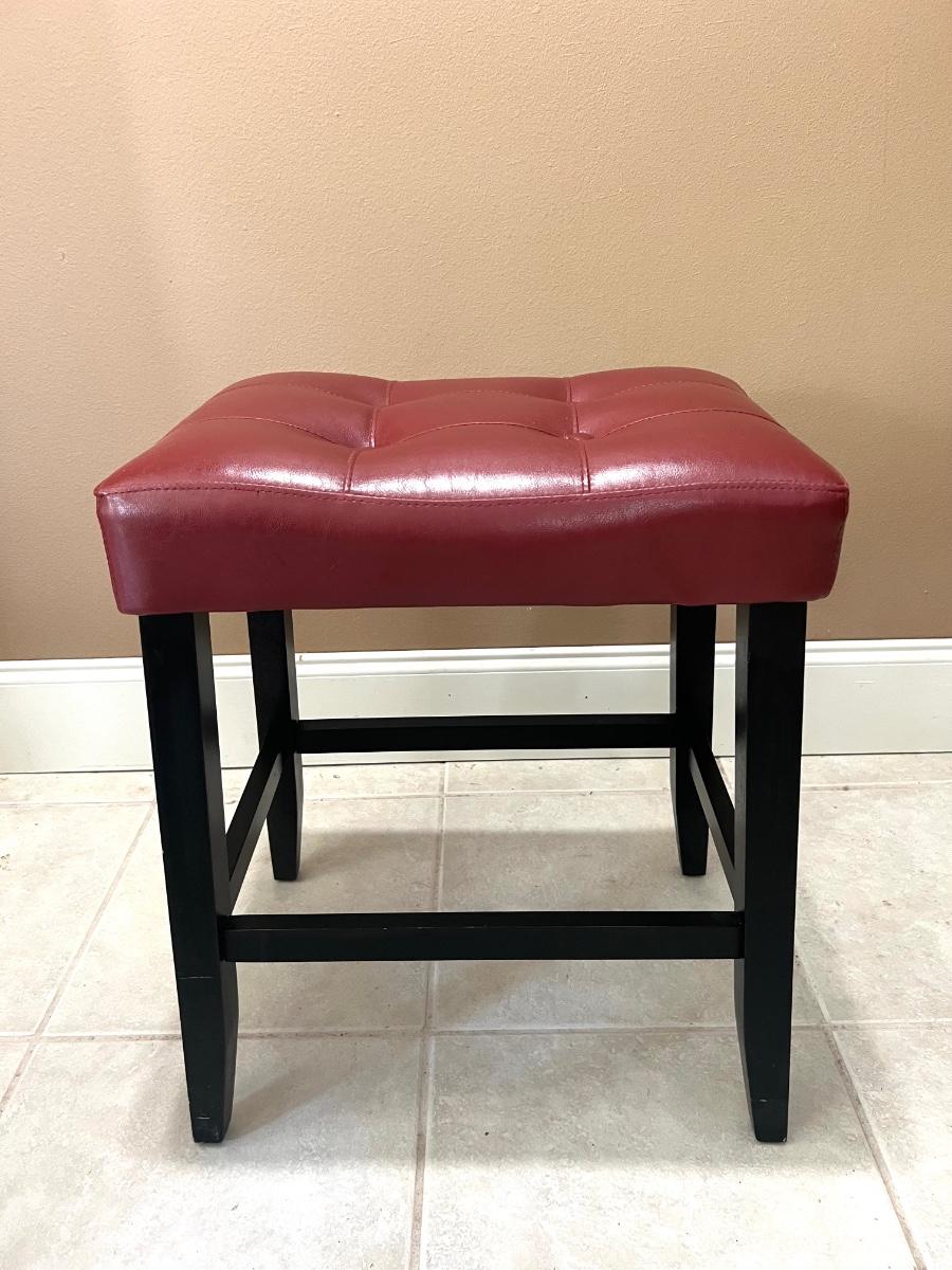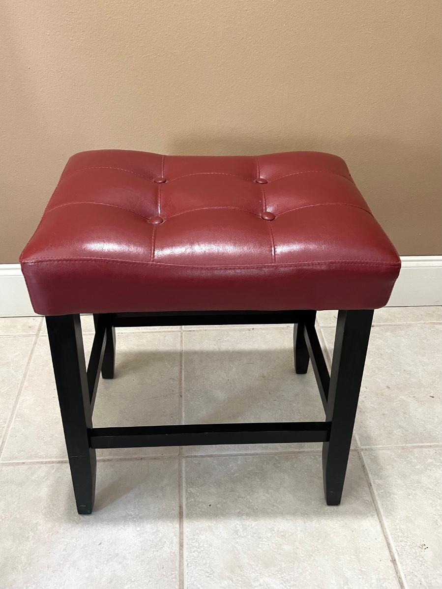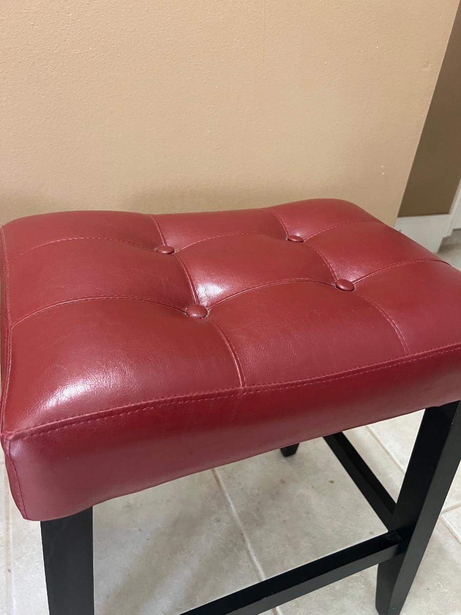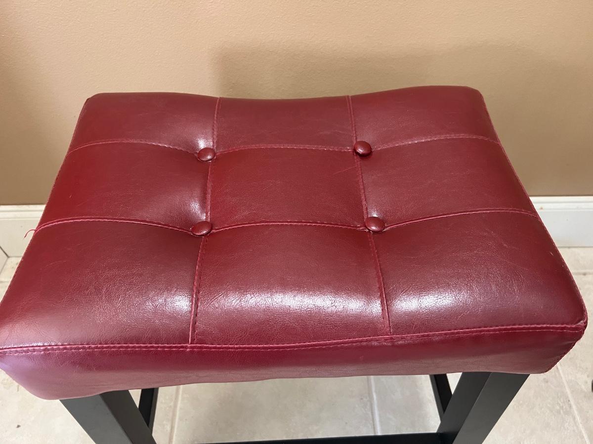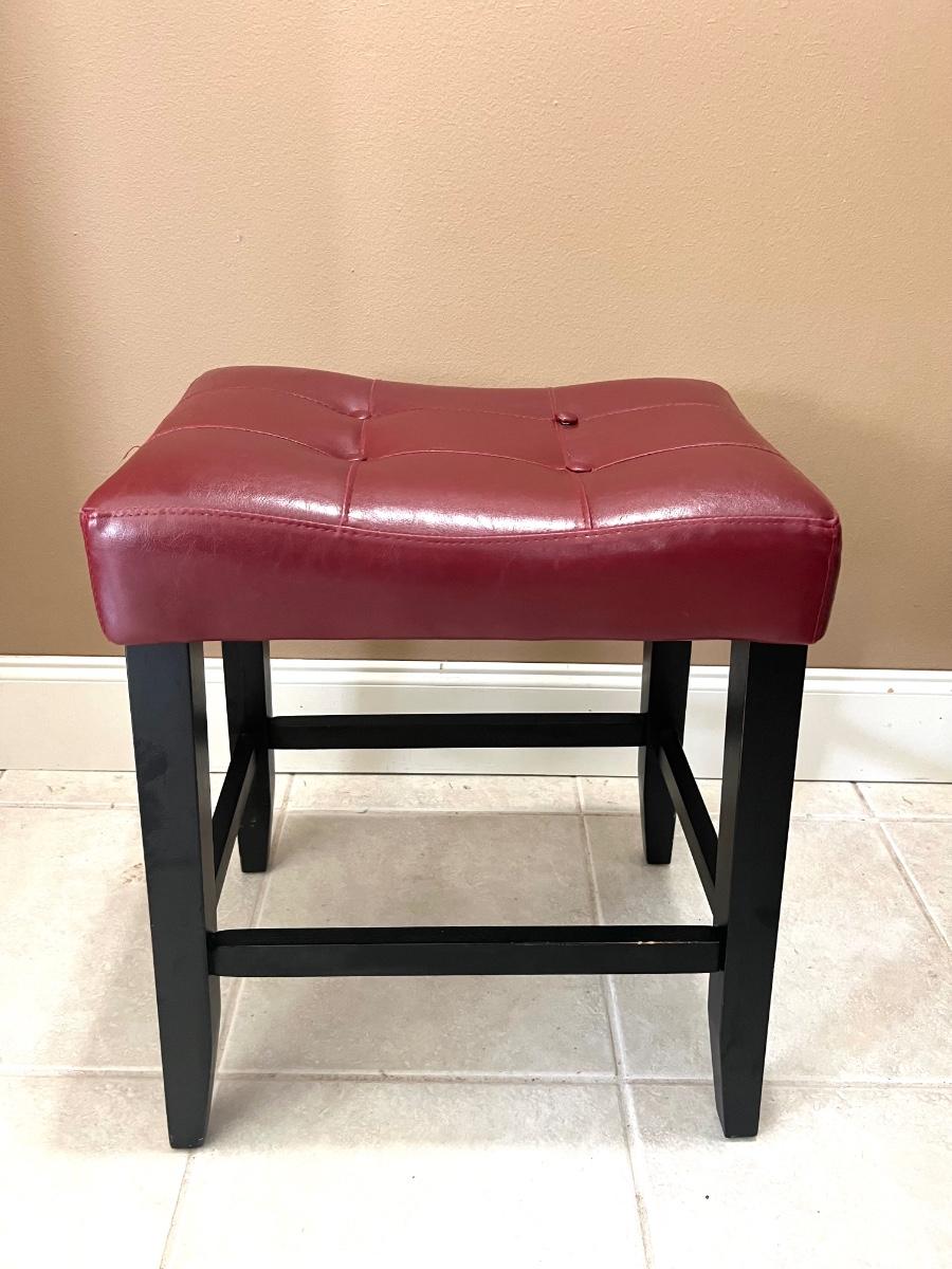 Set of two maroon and black barstools measure 25 inches tall, 20 inches wide, and 14 inches deep.