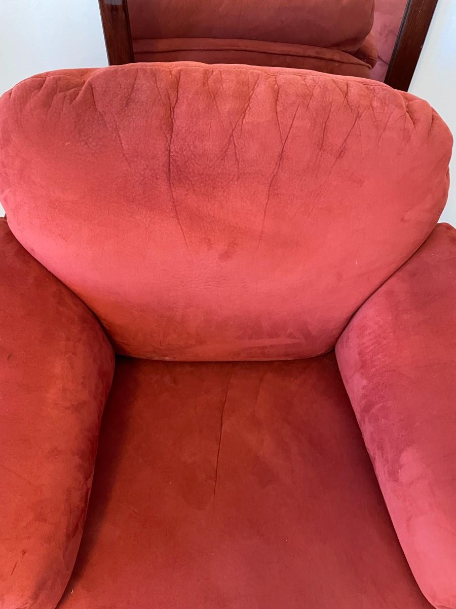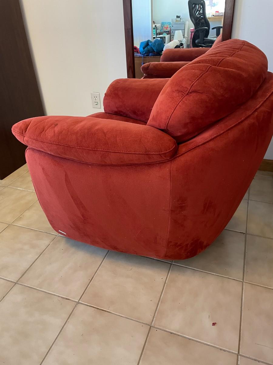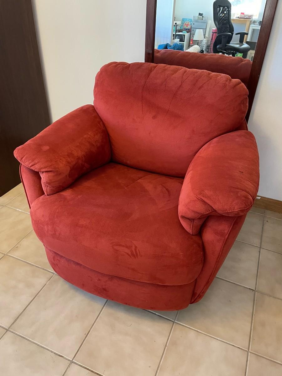 Chair is very comfortable. It swivels and rocks. Chair: 37"(w) x 42"(d) x 34"(h). Ottoman: 28"(w) x 23(d) x 17"(h)