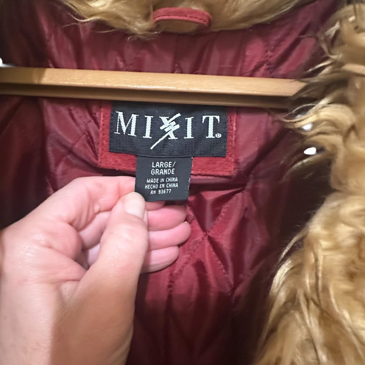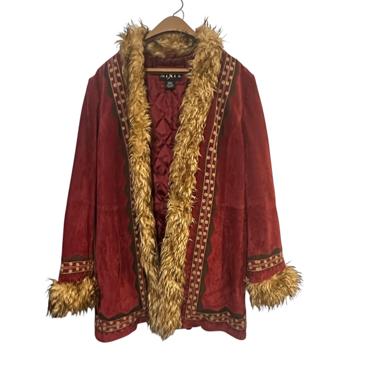 Maroon Leather MixIt Brand Coat with Faux Fur Trim & Decorative Trim Size Large- great condition