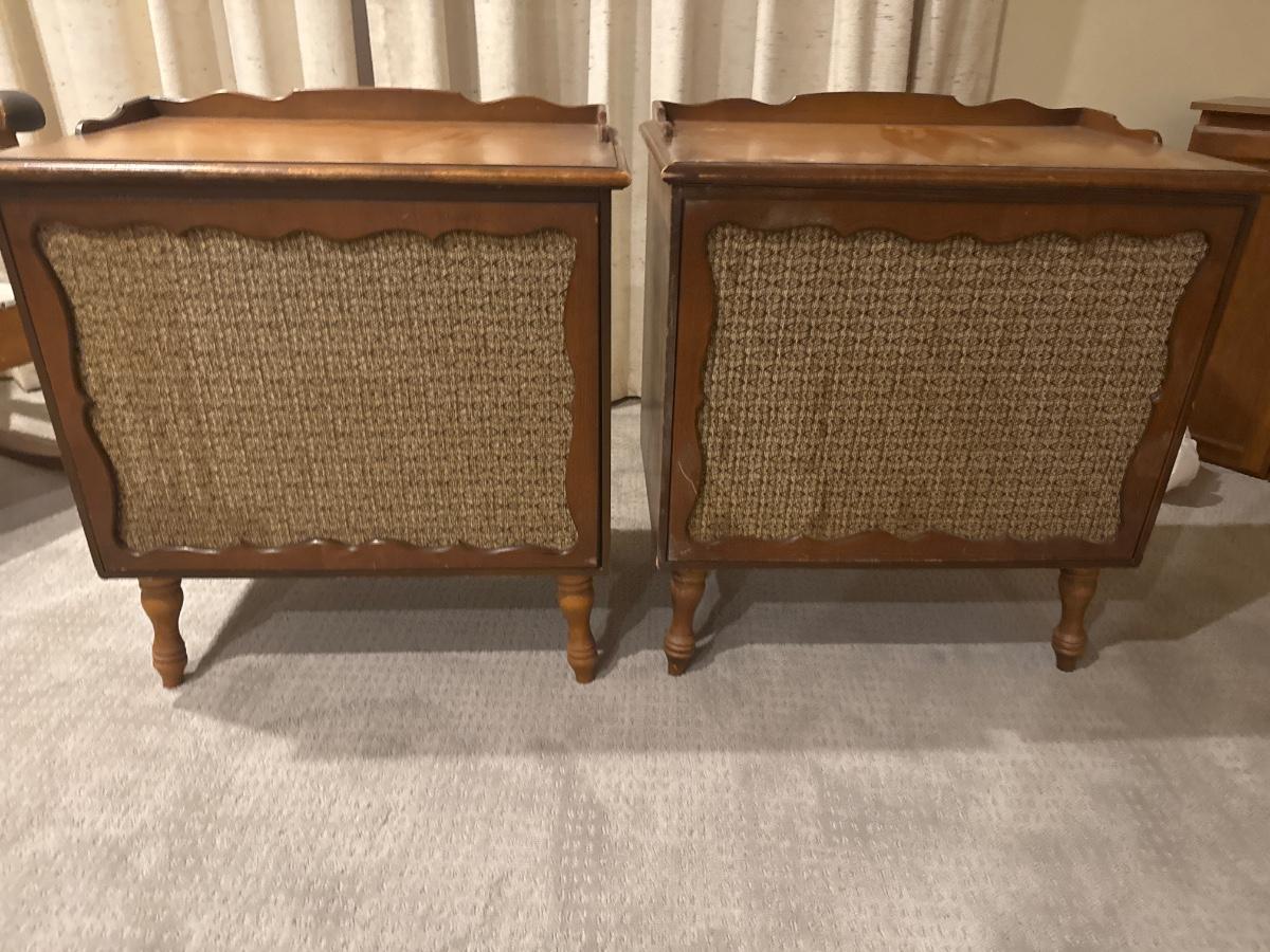 One of the units has the record player in it and the other one is for storage with speakers in it. Did not test the actual record player but turned on and powered up.