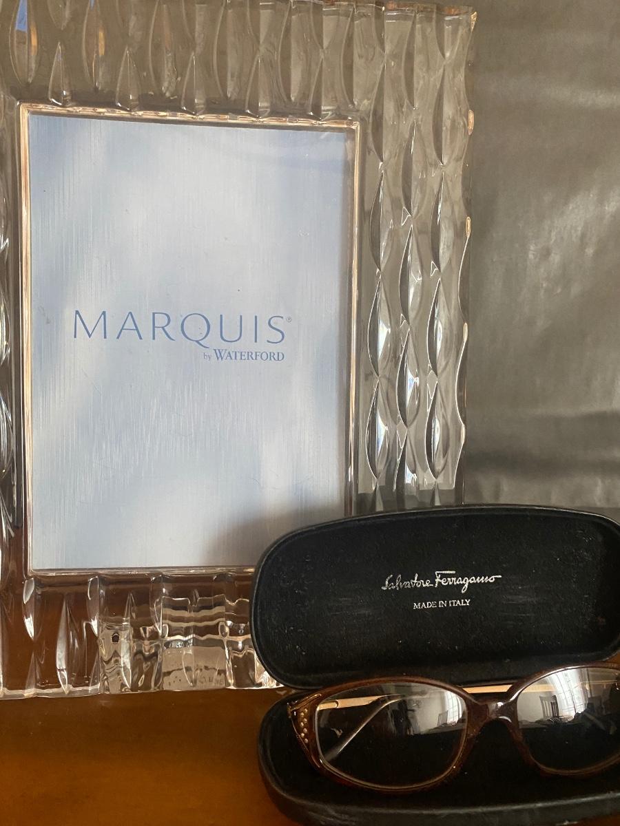 Marquis by Waterford Rainfall picture frame. Fits 5x7 pictures. The frame is 9x11. Made from Lead-Free Crystalline plus a pair of Salvatore Ferragamo prescription glasses with case