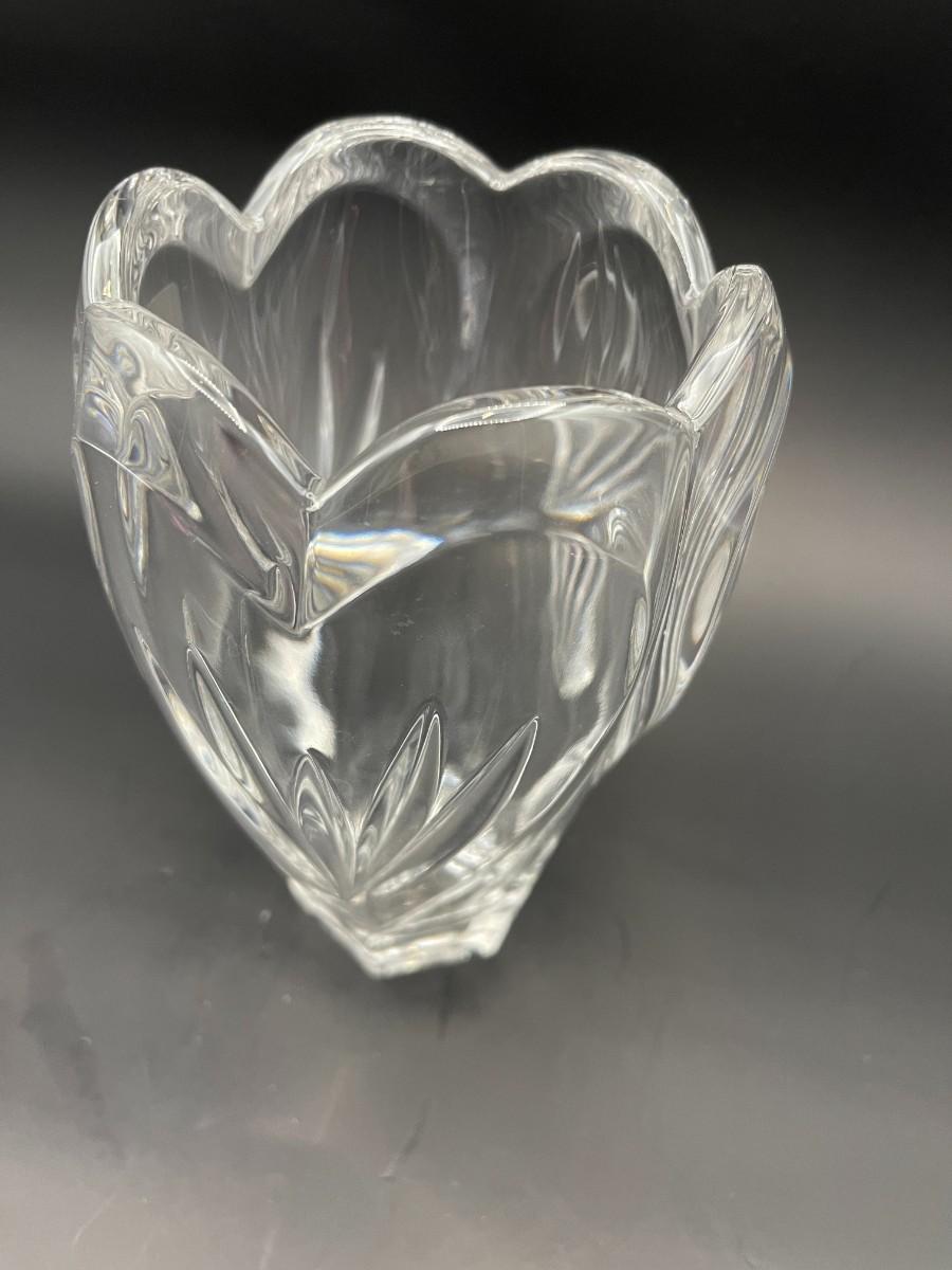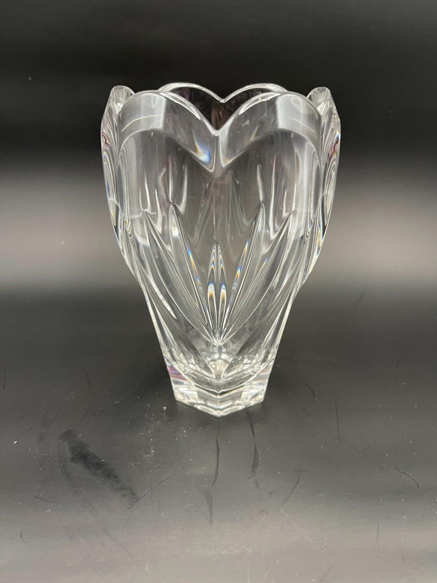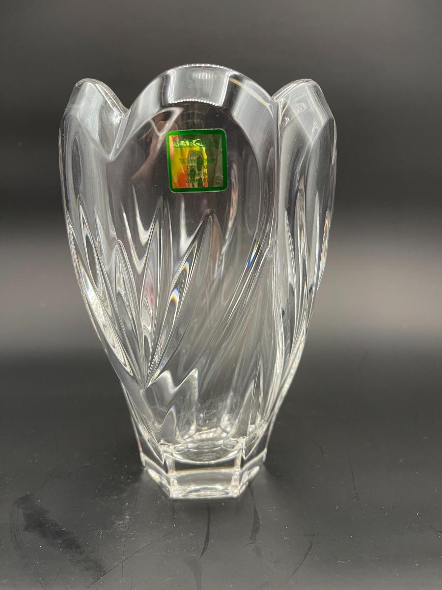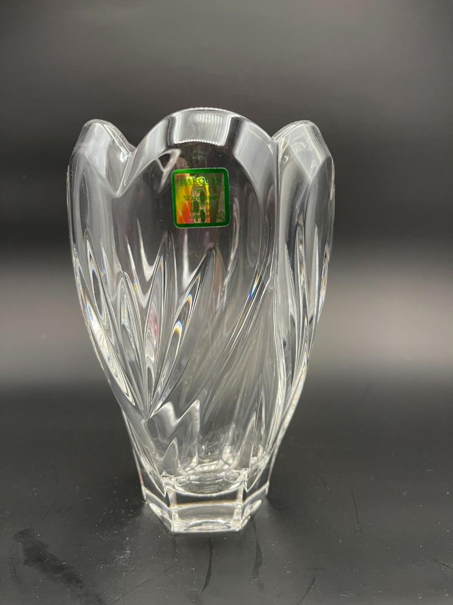A modern look from one of the world's best crystal makers: Charming, smaller, vintage vase from Waterford's "Marquis" line. 6.5" H x 4" W -- Signed on base, with original sticker. # 804