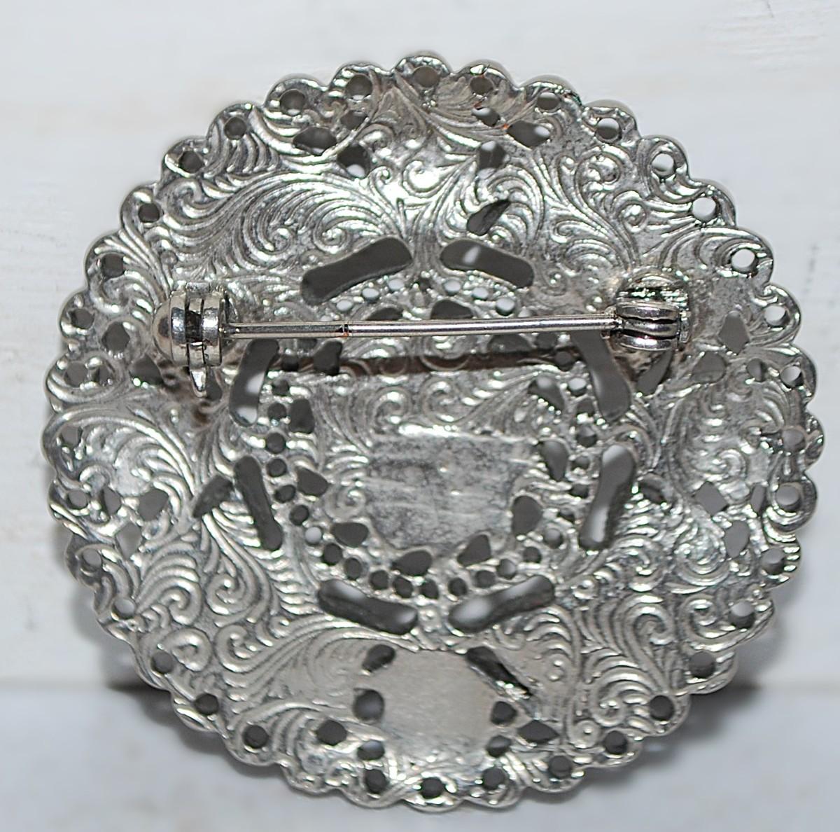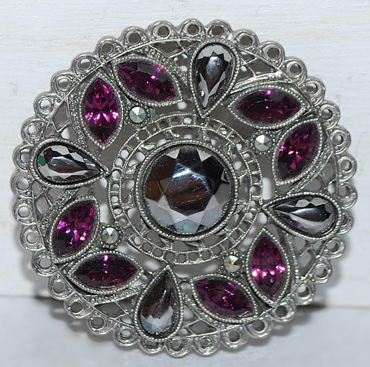 Marquise Cut PURPLE & Teardrop Cut GRAY Stones BROOCH (1¾" Diam.) on a Silver Tone Setting