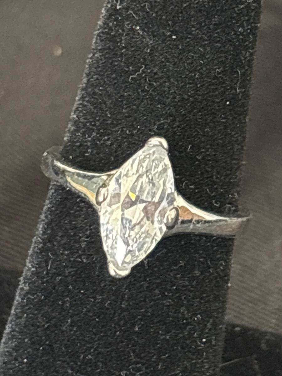 Marquise & Pear Faux Diamond Solitaire Silver Tone cocktail ring