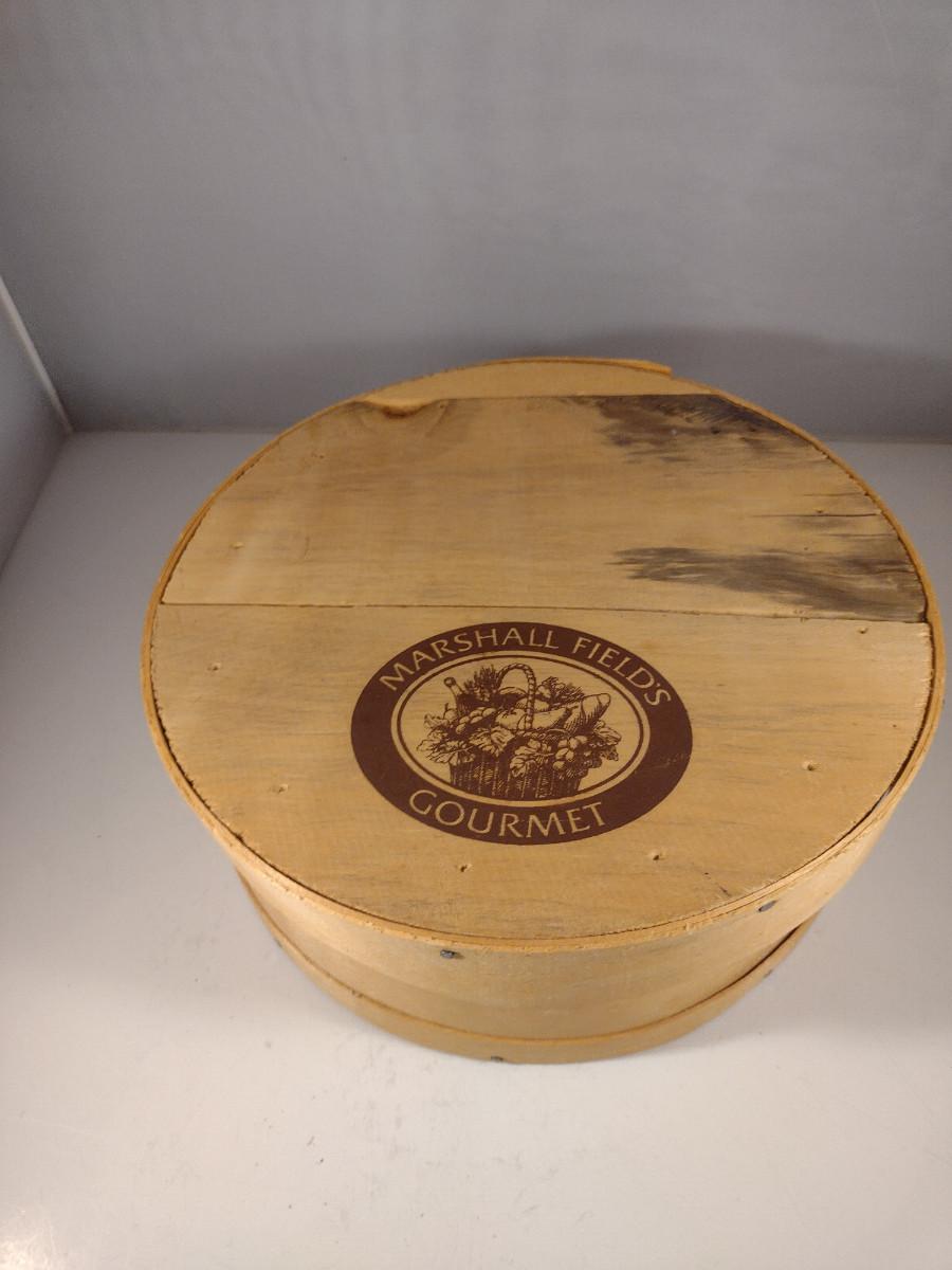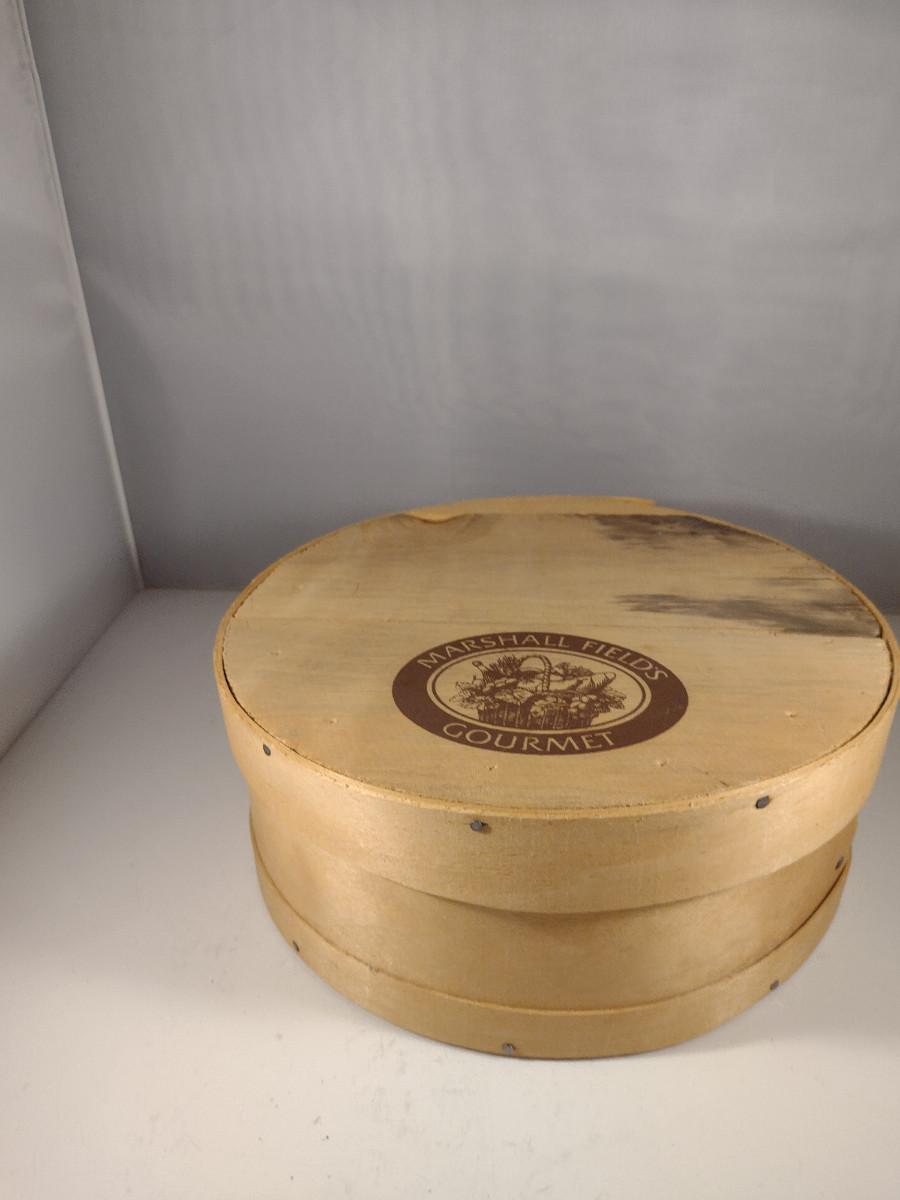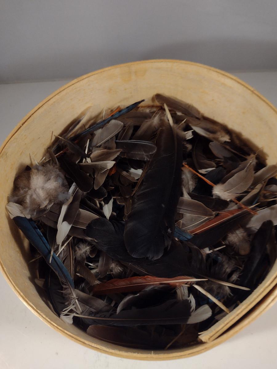 Marshall Fields Wooden Cheese Box Filled with Bird's Feathers