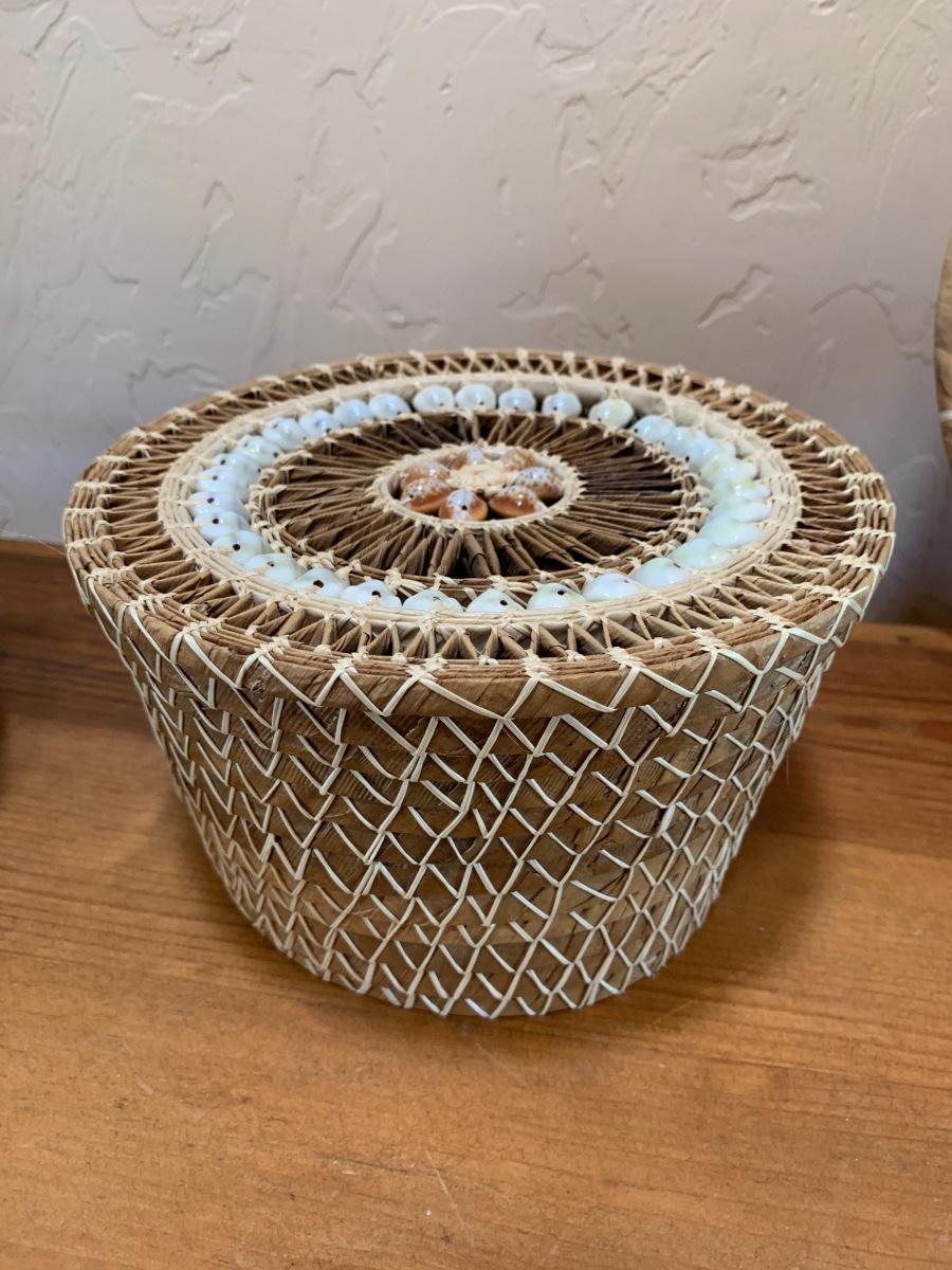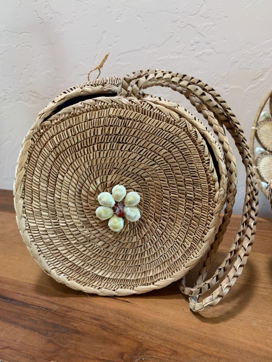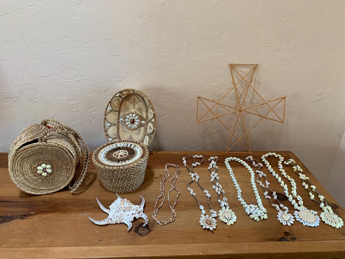 Marshall Island Handmade Shell items. Very beautiful and well crafted. Lot includes shell necklaces, woven with shell baskets and a purse.
