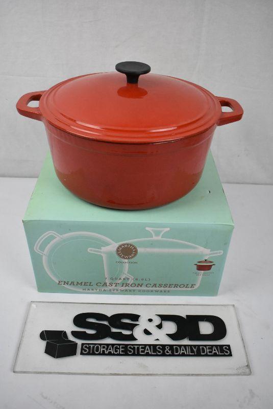 Martha Stewart 7 Qt Enamel Cast Iron Casserole Cookware, Red, Like New