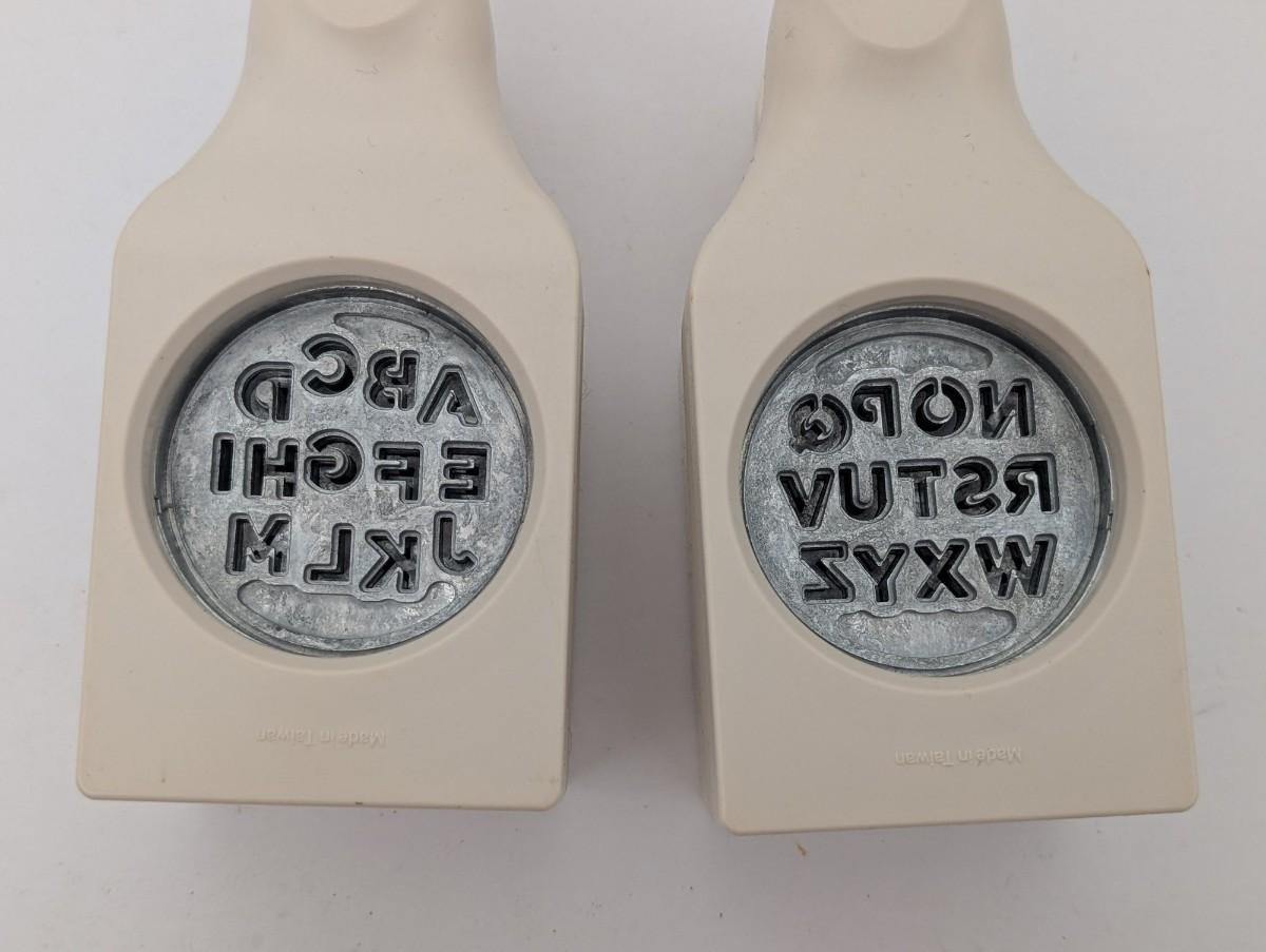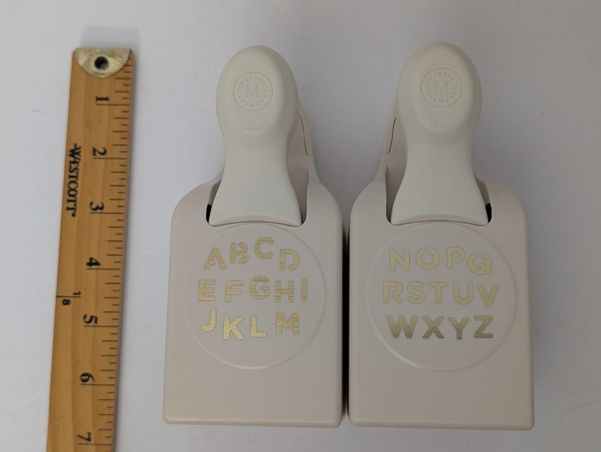 Pair of Martha Stewart craft punches designed for cutting the full alphabet A–Z, split into A–M and N–Z punches. Durable paper cutting tools perfect for scrapbooking, card making, journaling, and creative DIY projects. Essential set for crafters and paper artists.