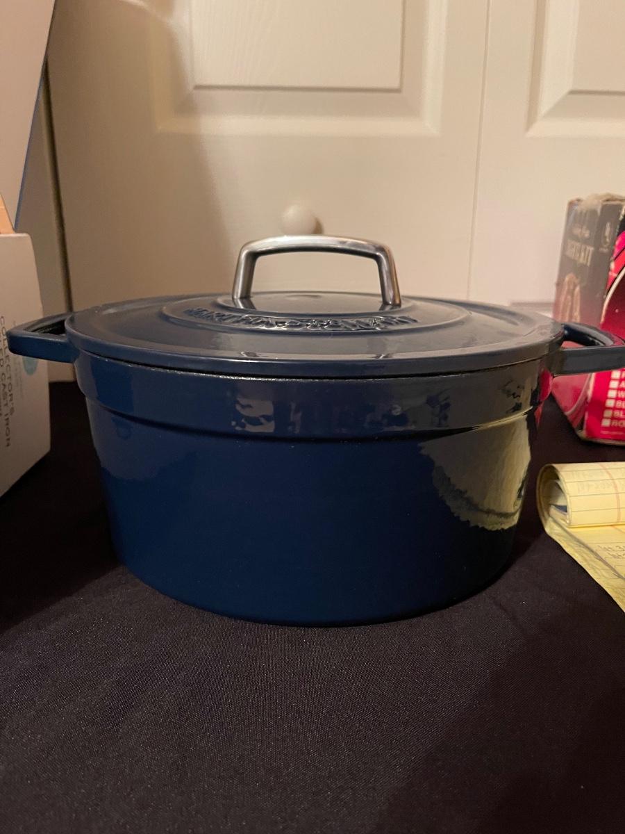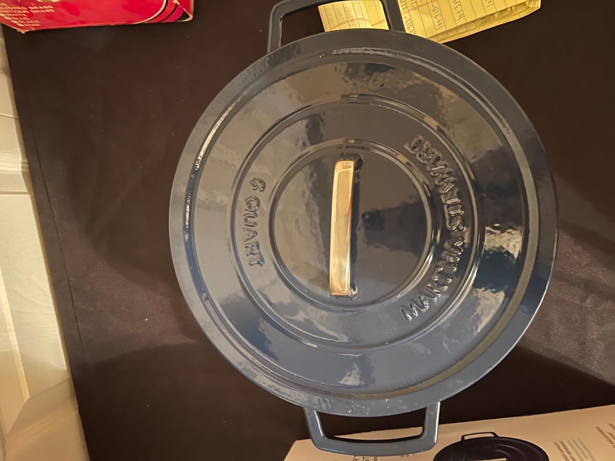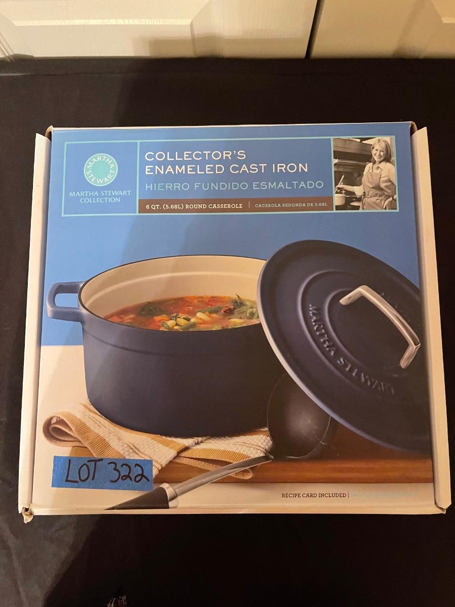 Martha stewart collector's enamled cast iron 6qt. Round casserole, Brand new in box, retails for $180.00