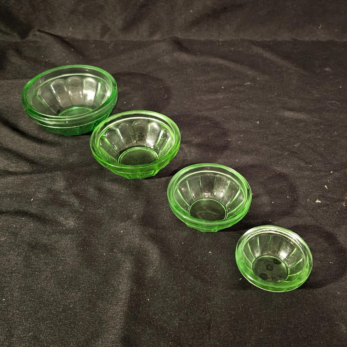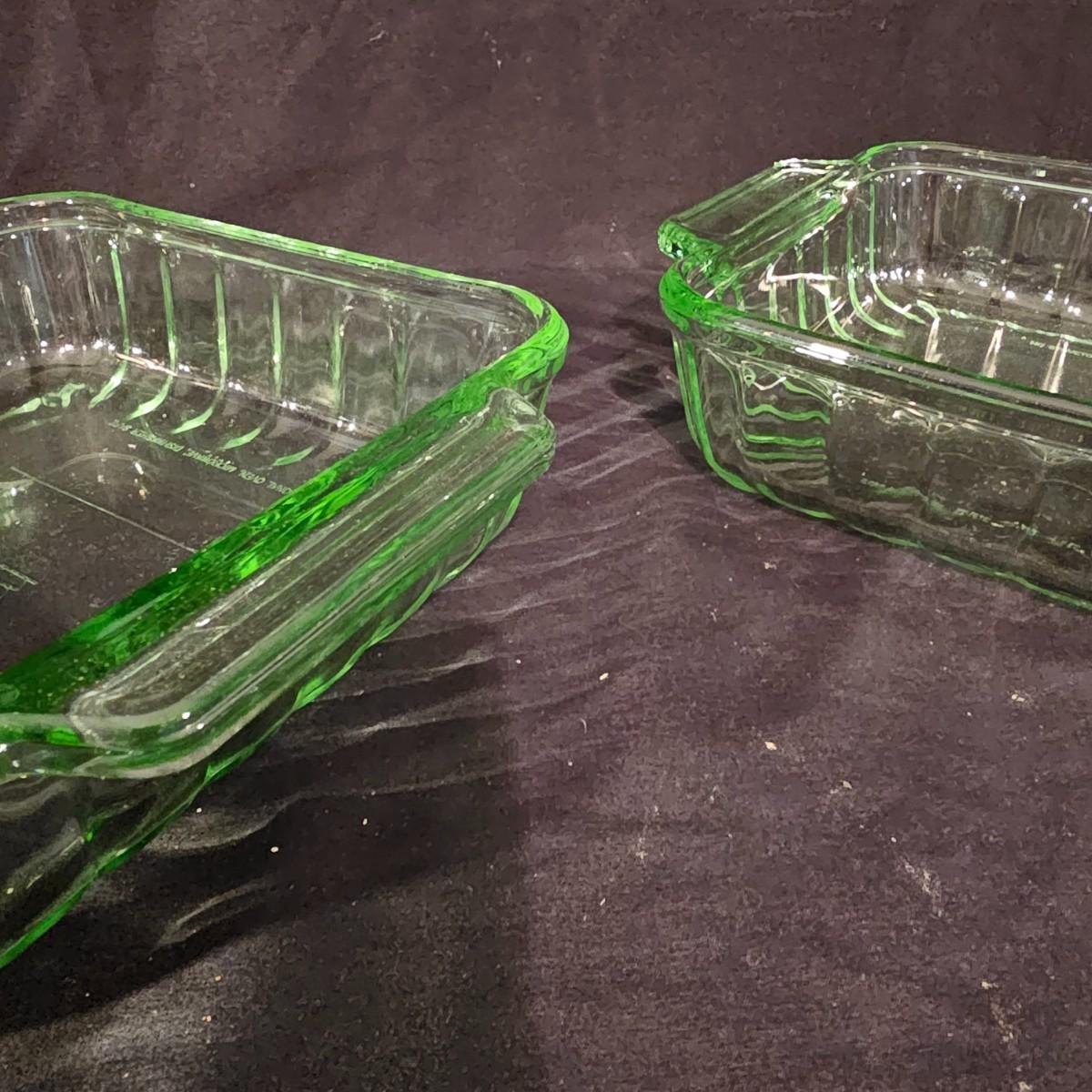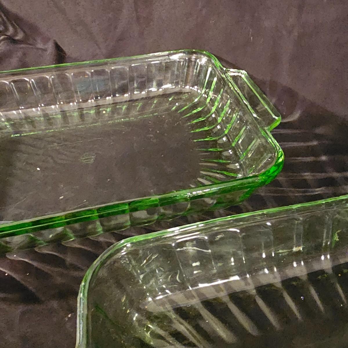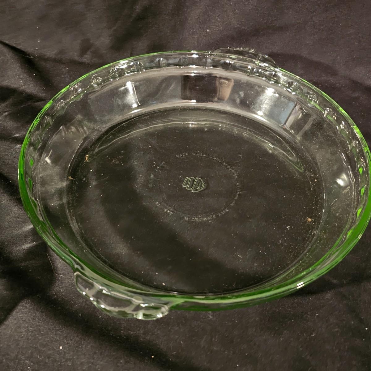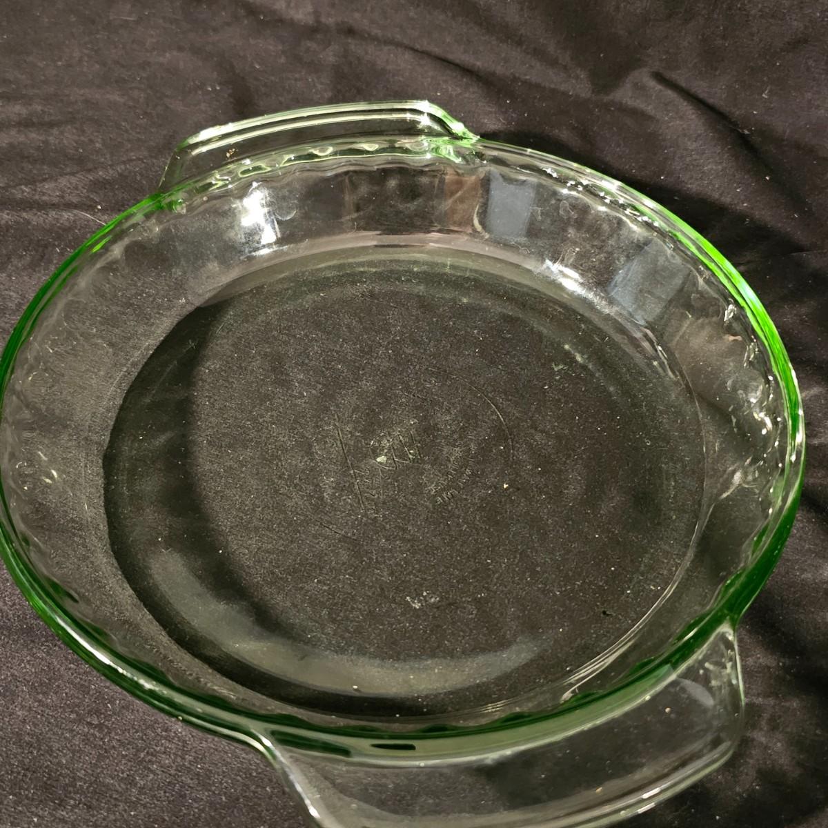 Several different types and sizes of green glass bake/Cookware by Martha Stewart Everyday. Rectangle, square, round, more. Two 10" x 16" rectangle, two 8.5" x 10" square, one 10"D round. Three pie plates, one 10" and two 9.5" round. Set of four small graduated round bowls. See photos for details. Local pickup only.