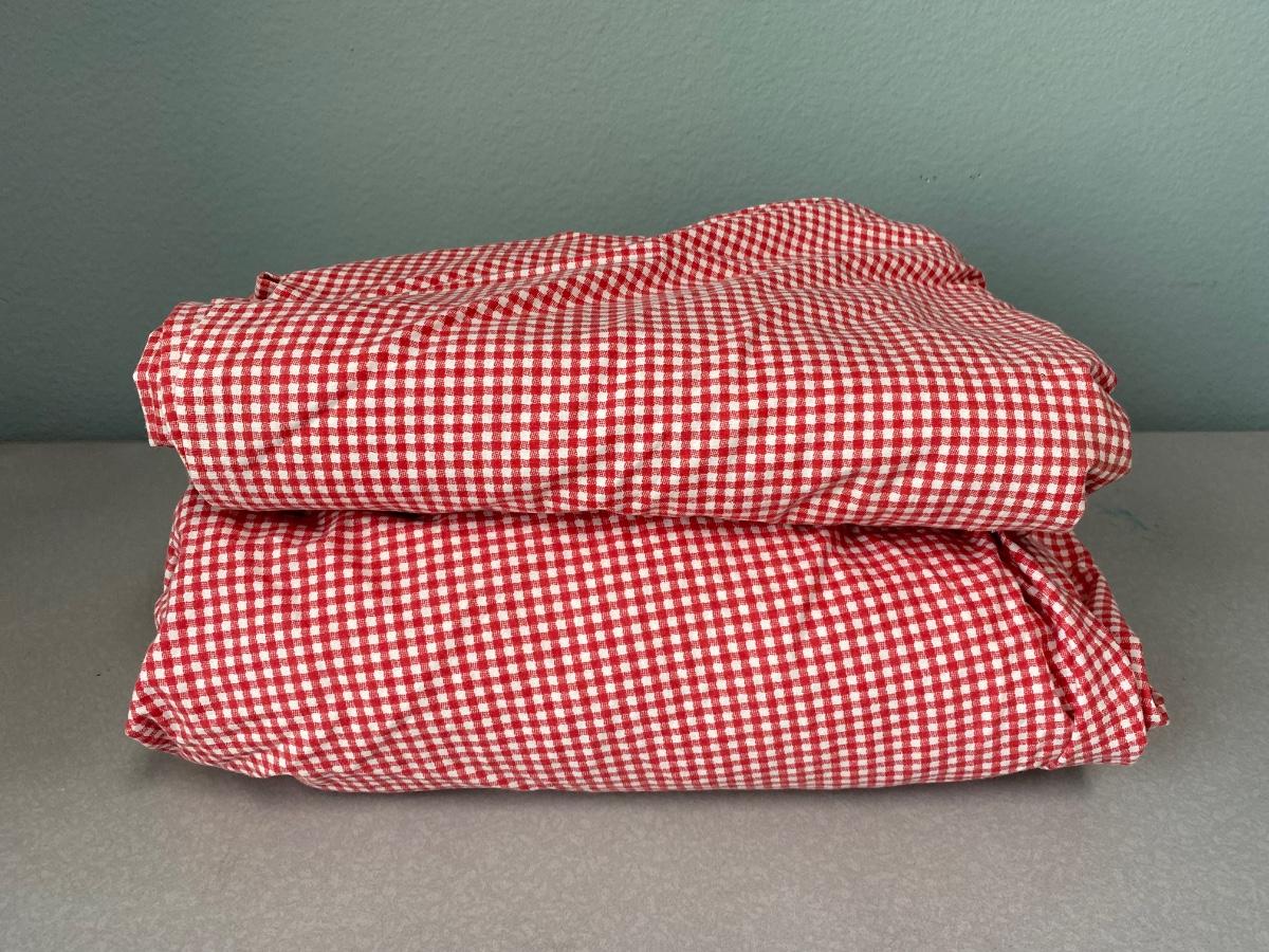 Martha Stewart Red Gingham Plaid Queen Bed Sheets Flat & Fitted. No pillowcases. Sheets are in good condition, light wear from use but no spots or holes noticed. Material is on the thicker side for sheets, good for winter.