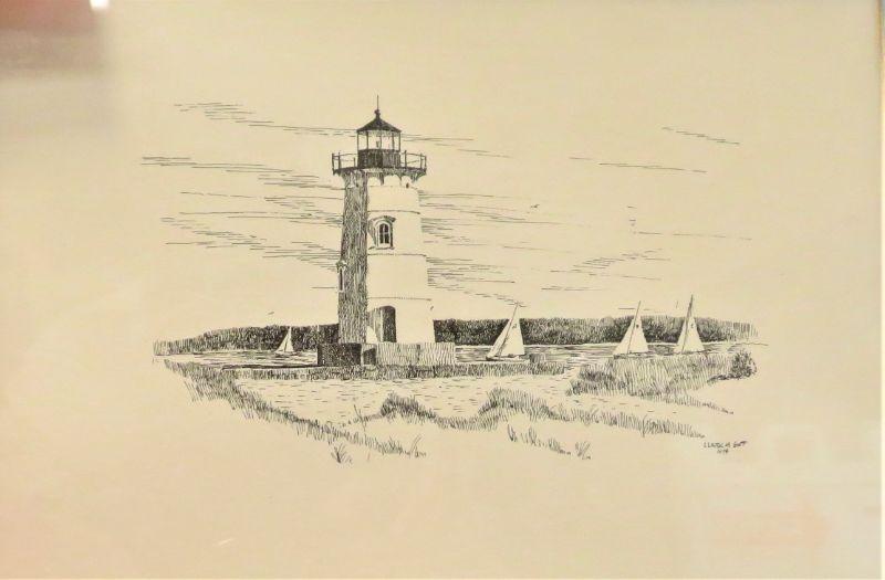 Martha's Vineyard Lighthouse sailboats signed CLARK GOFF 1974 Framed ART
