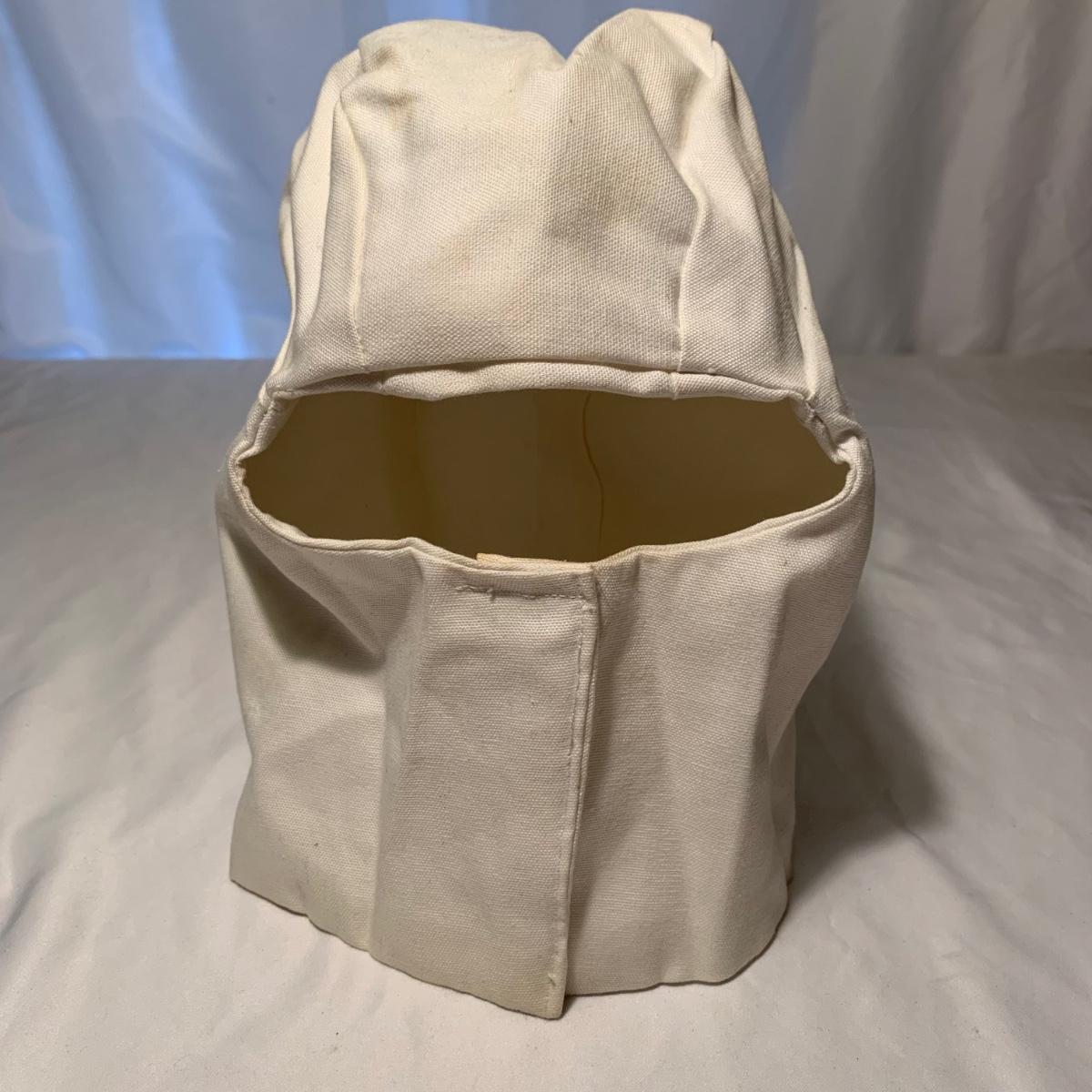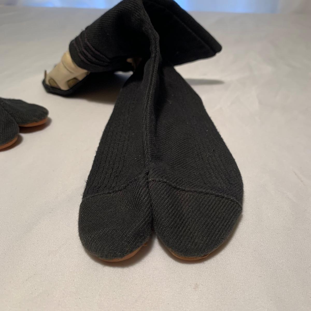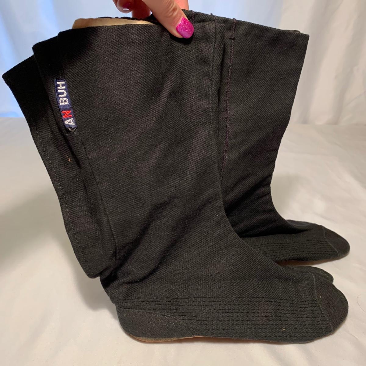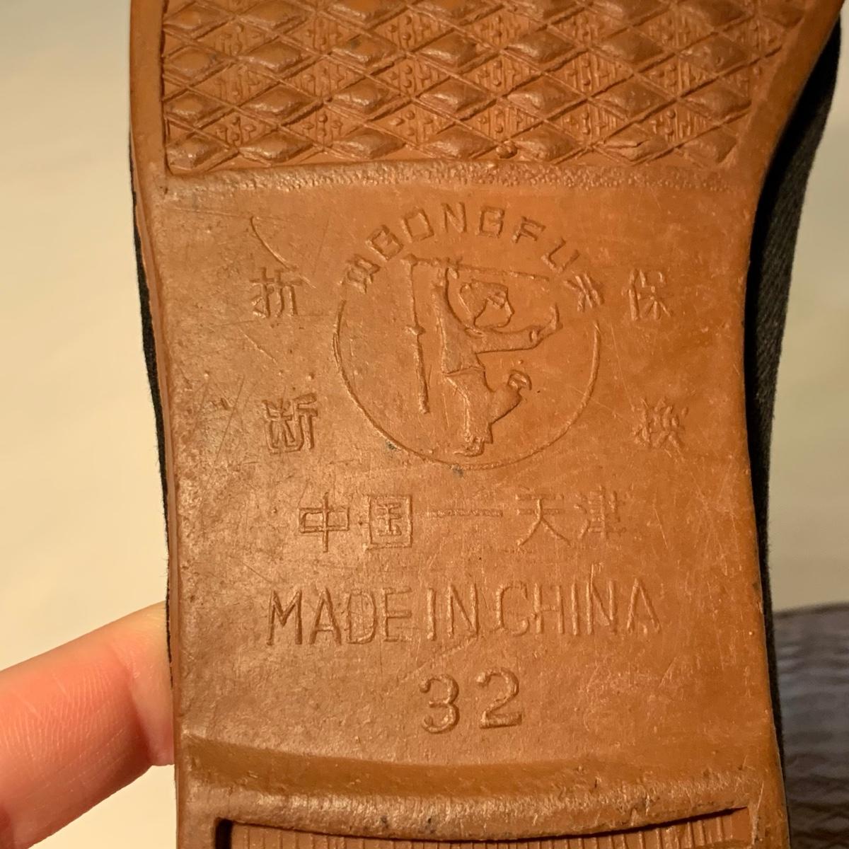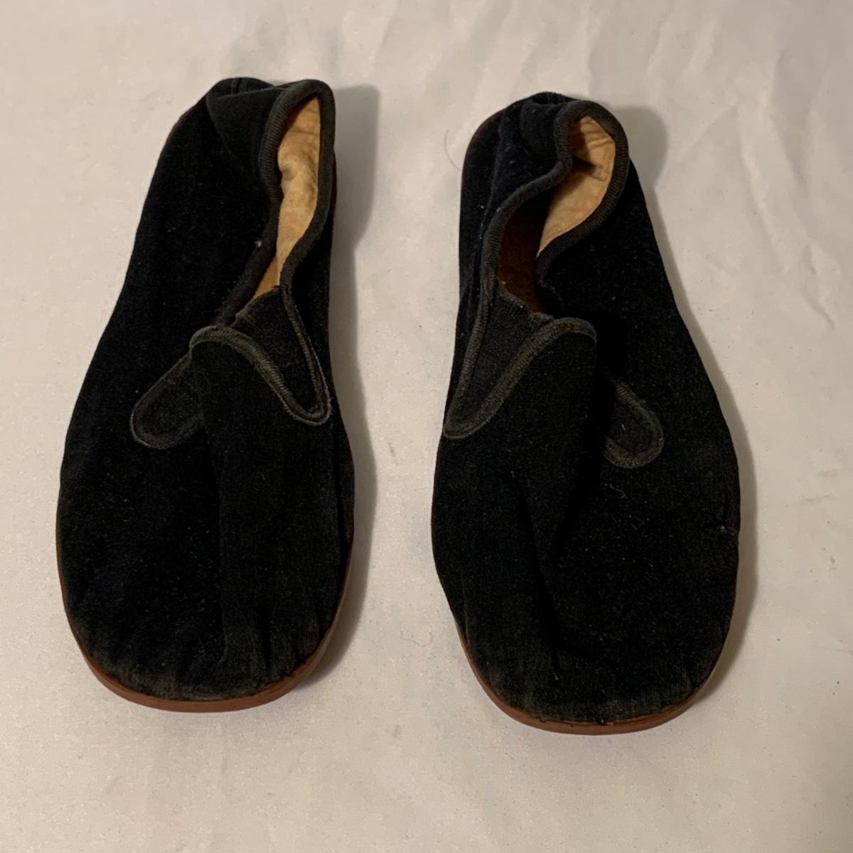 Four items of martial arts gear. One pair of Chinese made Gong Fu brand king fu shoes, size 32. They are about 9” long. They are flat and black and show some wear, but feel like they are strong and have quite a bit more life in them. There is a pair of Taiwanese made An Buh brand ninja boots, size 3. They are about 9” long. They are black fabric with gold colored fasteners along the leg of the boot. There are also two balaclava style ninja masks. One is white and has a small snap fastener, the other is black and has a tie to fasten. The black mask is AWMA brand. The white mask has some stains that might be washable. Shipping available.