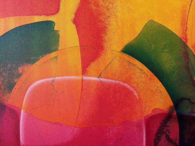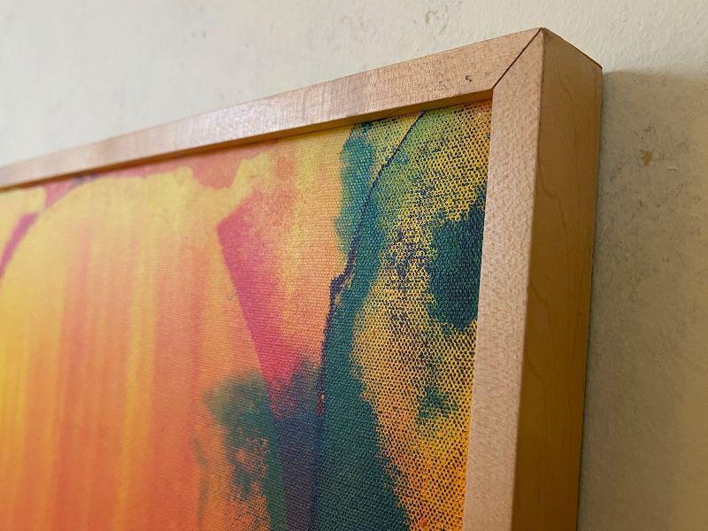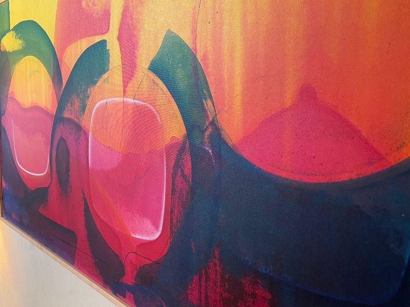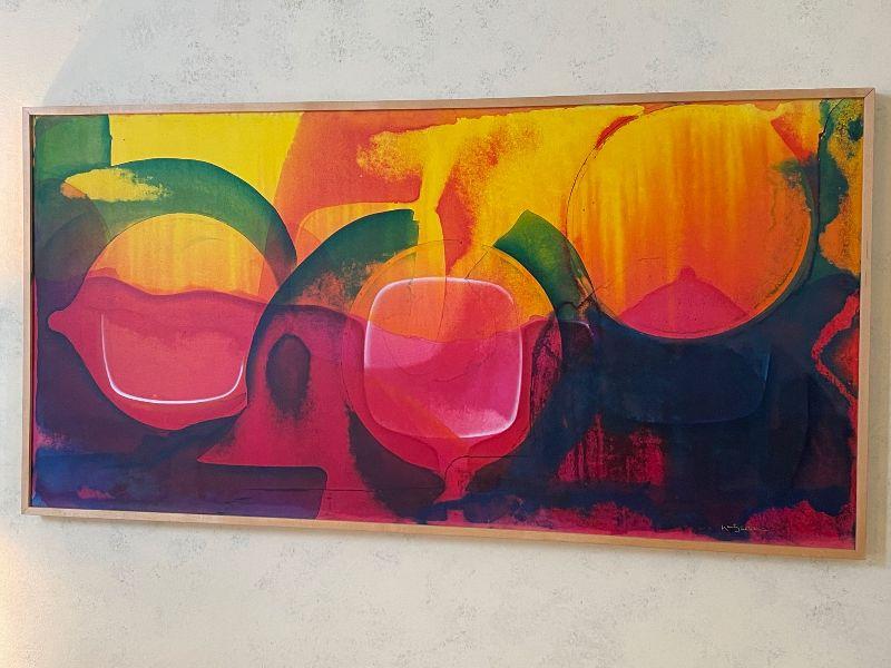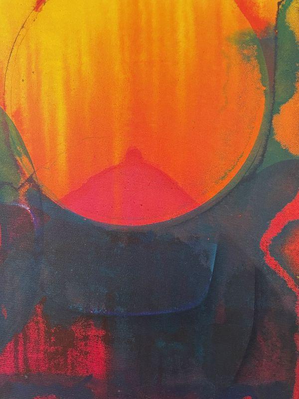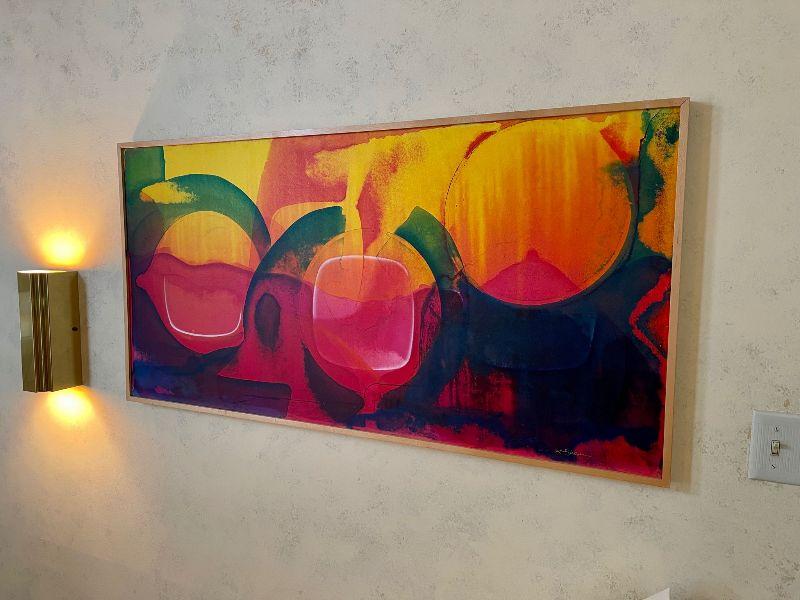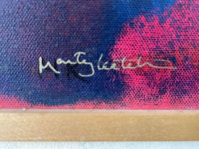 The subject item for auction sale is an original painting on hand-stretched canvas by noted and listed Kansas artist Marty Ketcham. Influenced by Georgia Okeefe, Ketcham moved to Hawaii and painted details of the indigenous flora and fauna. The bright, sunlit pallet of this work is typical of the abstractions he created while there. Close observation will reveal a nude female form worked into the image.