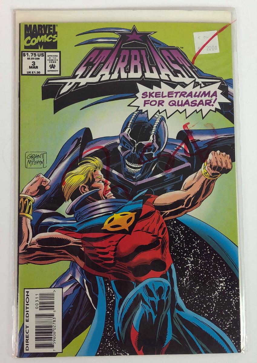 Issues #2-4 of STARBLAST from Marvel Comics in 1994...WRITER:Mark Gruenwald..ARTISTS Herb Trimpe, Grant Miehm, Nate Palant, Rich Buckler Jr...COVERS: Larry Alexander..Grant Miehm..Dante Bastianoni...Fine to very fine condition...A powerful energy source, the Starbrand, was inadvertently brought to our universe by Quasar. Now, the power resides in the body of his friend Kayla, whose greatest wish is to be rid of it forever...(Photographed under plastic).