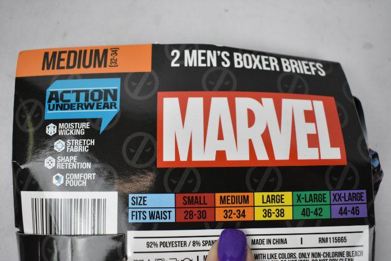 Marvel Deadpool Boxer Briefs, Qty 2, Size Medium (32-34) - New