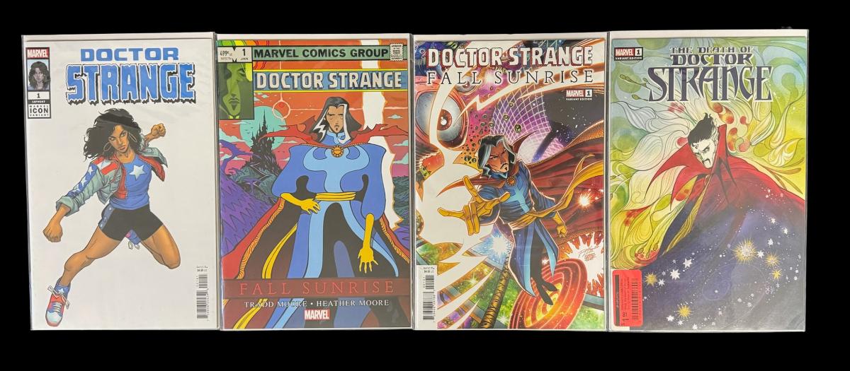 Includes various editions of Doctor Strange comic books. All comics were preserved upon purchase. Total of four books.
