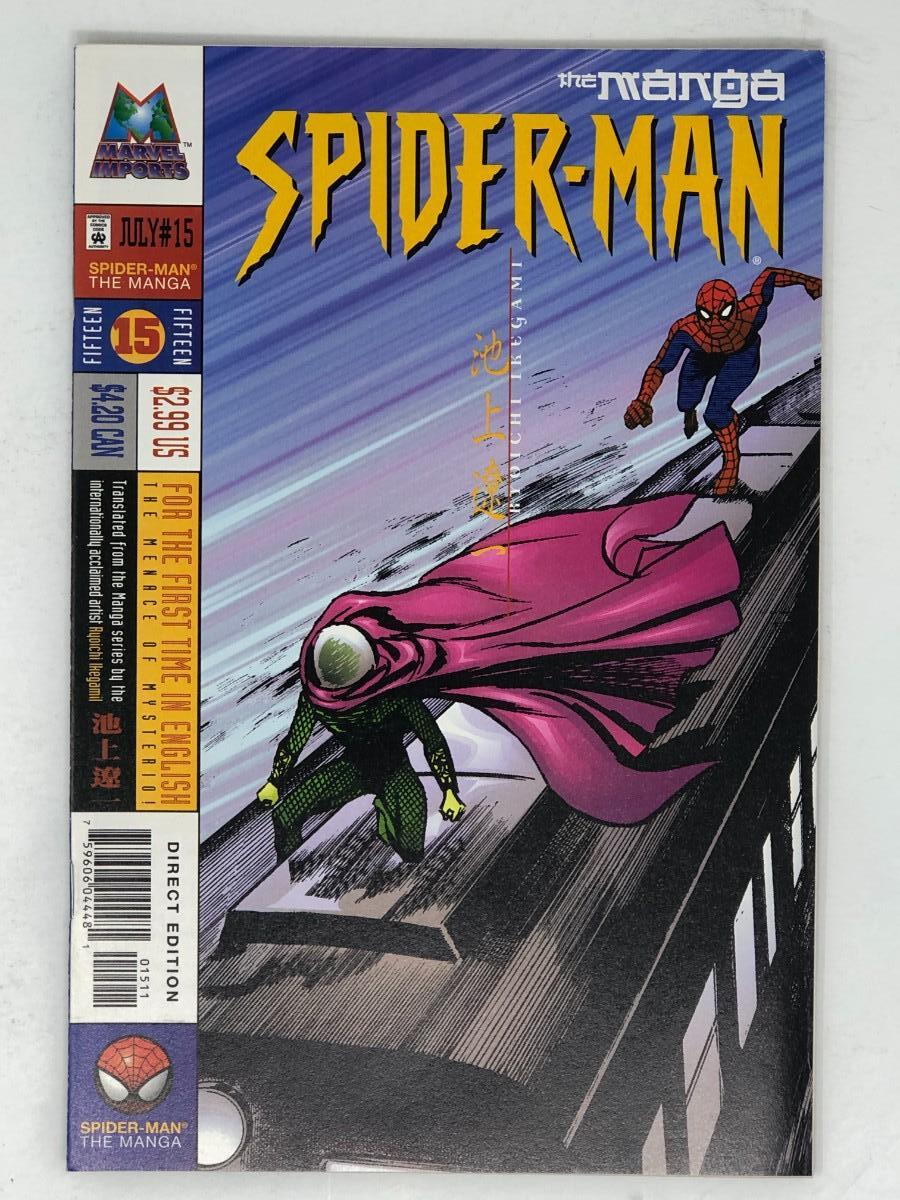 Marvel, Manga Spiderman, #15. Approximate measurements: 7 x 9 inches. Materials: paper. Shipping cost: $4. Different rate to California, Alaska, Hawaii and all International apply.