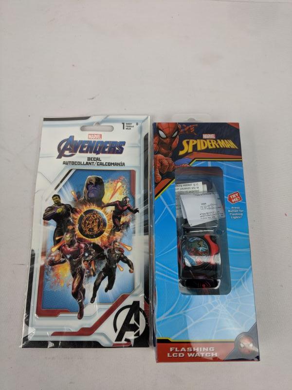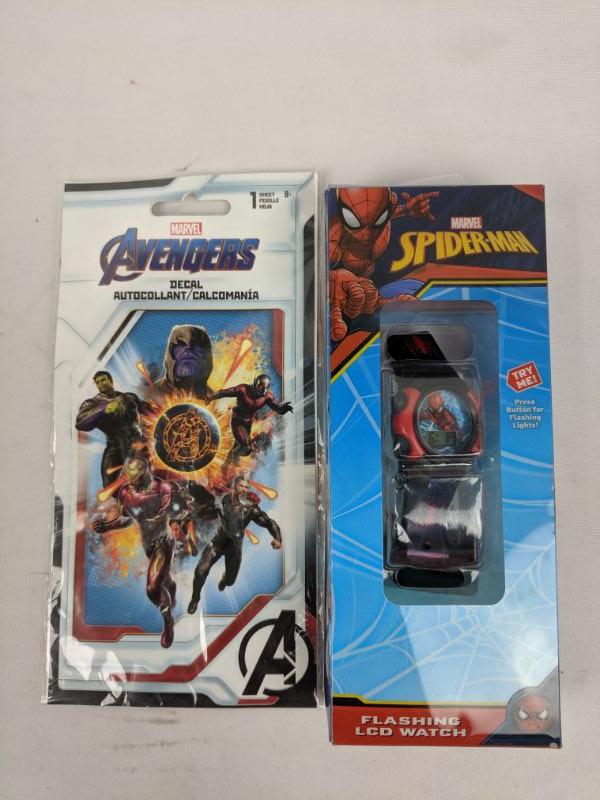 Marvel Spider Man Digital Watch & Marvel Avengers Decal - New