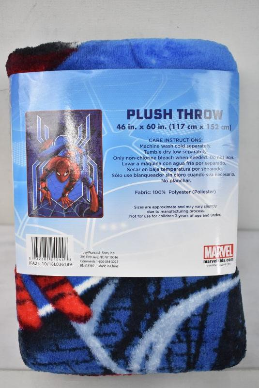 Marvel Spider-Man 46" x 60" Plush Throw, $15 Retail - New