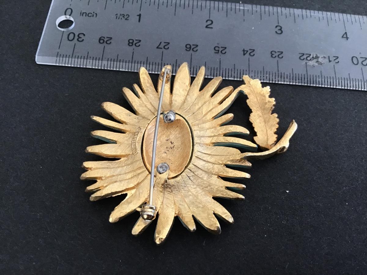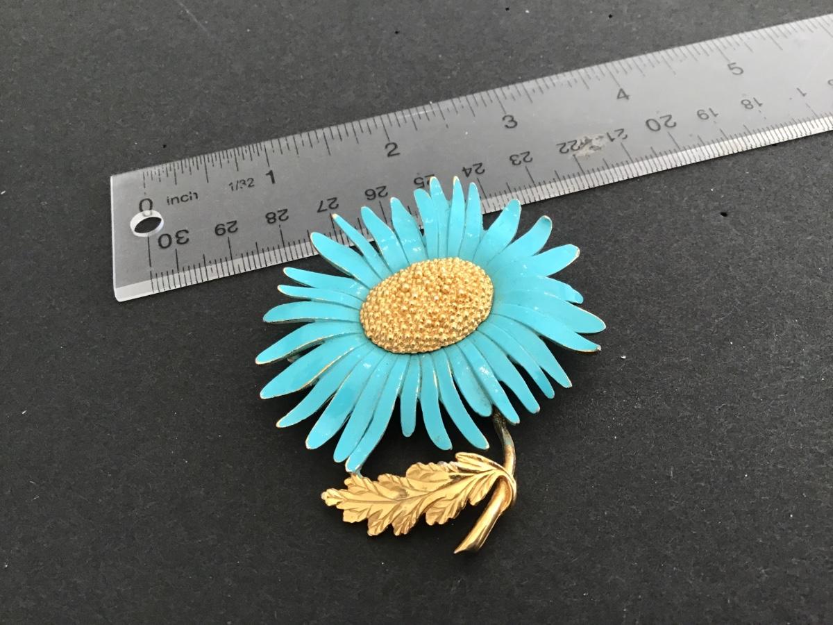 Marvella Vintage Daisy Brooch Teal and Gold Toned Signed