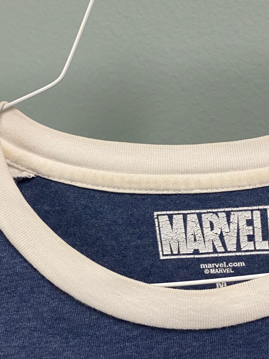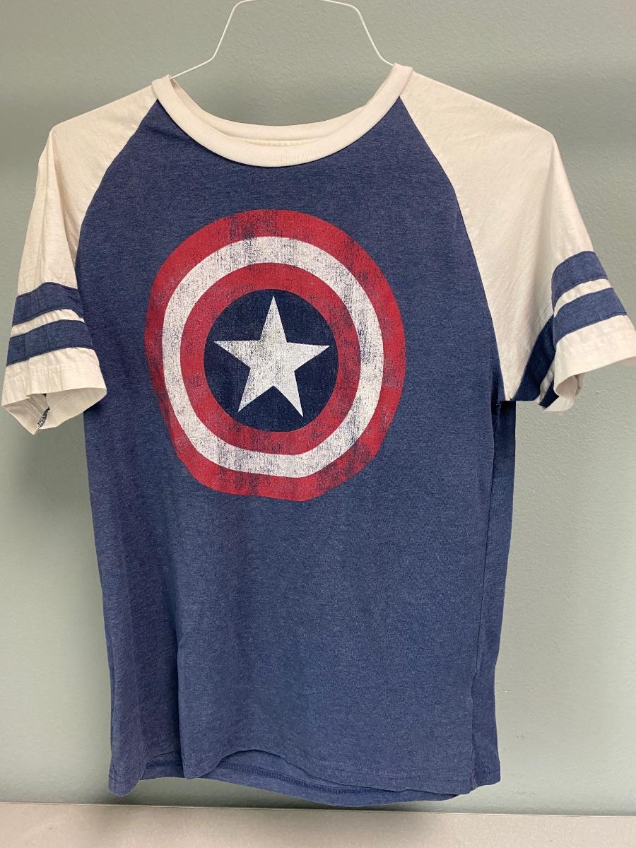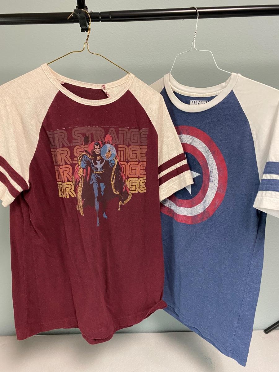 Marvel's Dr. Strange & Captain America Distressed Style Graphic T-shirts. In good condition. Some light discolor inside the collar. Size medium.