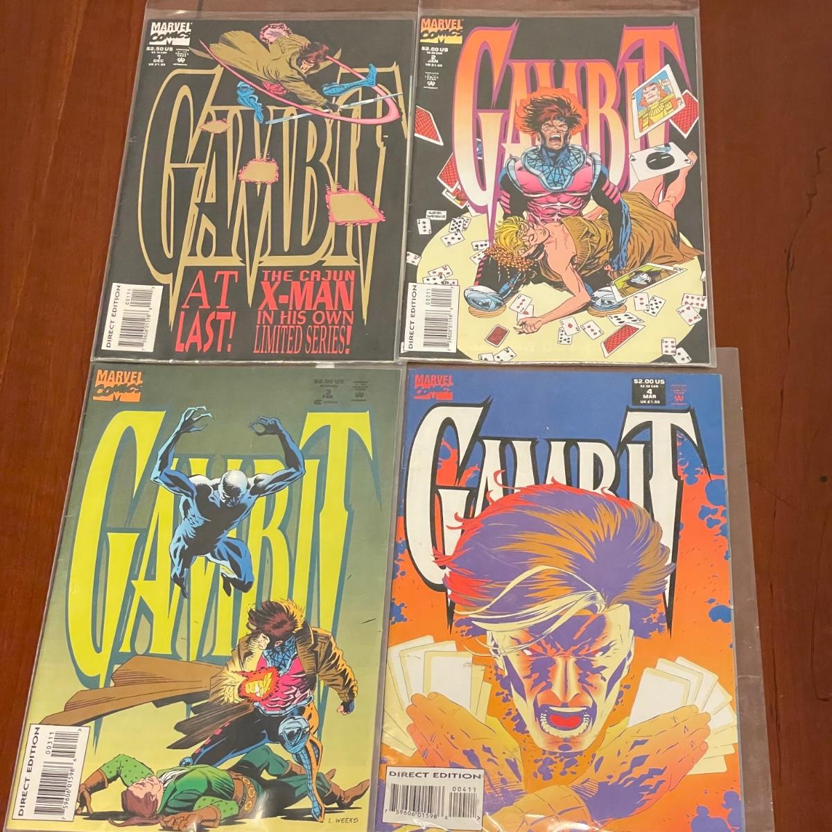 Volume one numbers one through four of Gambit by Marvel Comics. The number one volume has an embossed cover. All have been stored in protected plastic sleeves. See images. Shipping available.