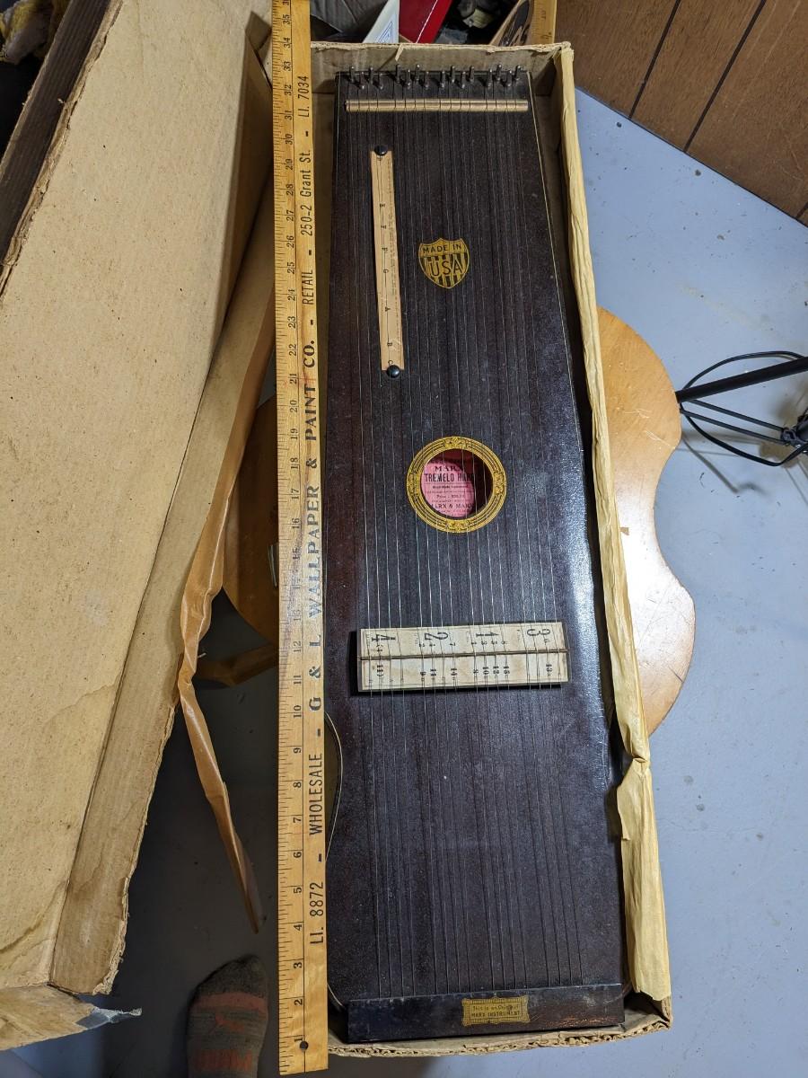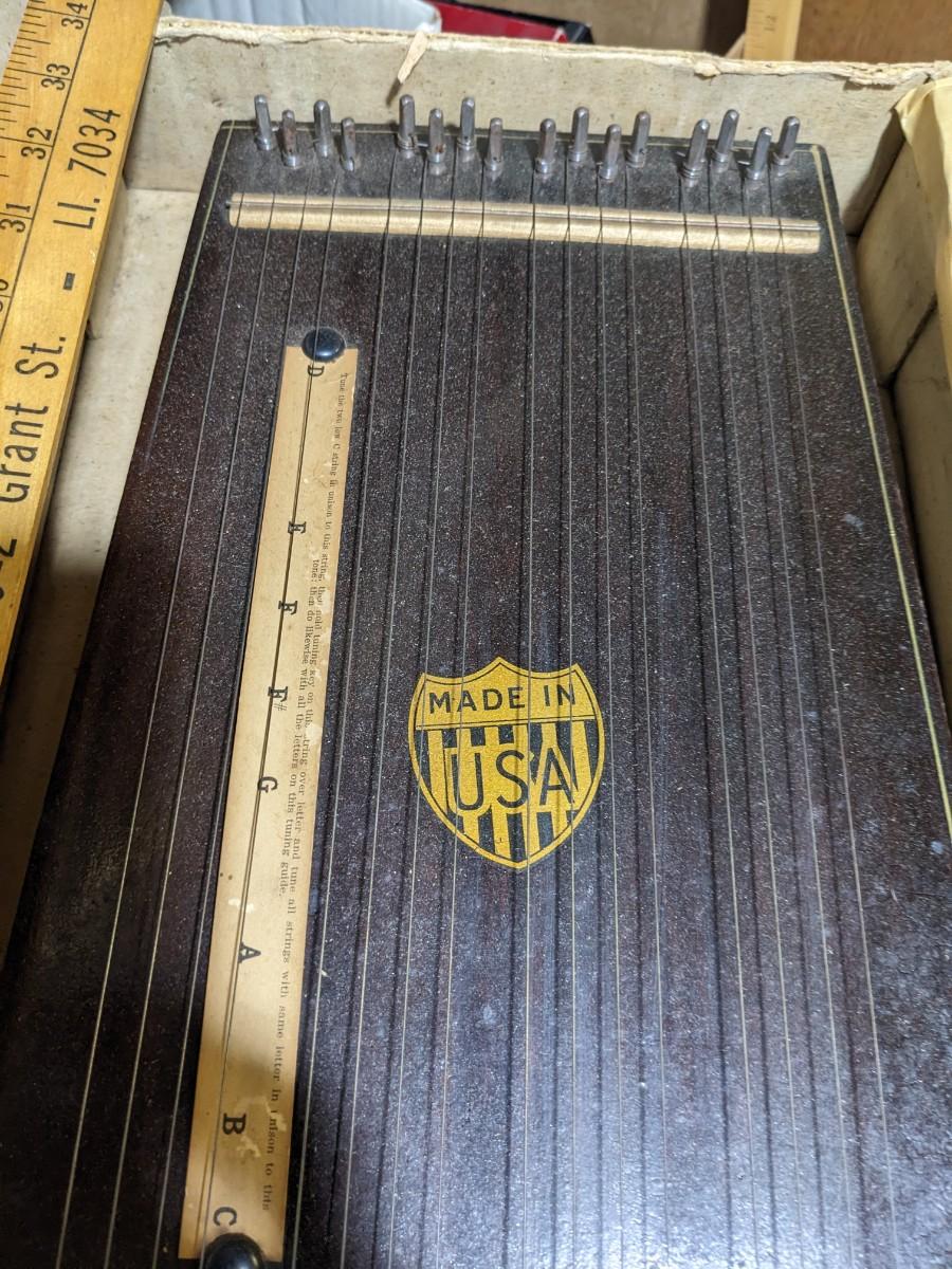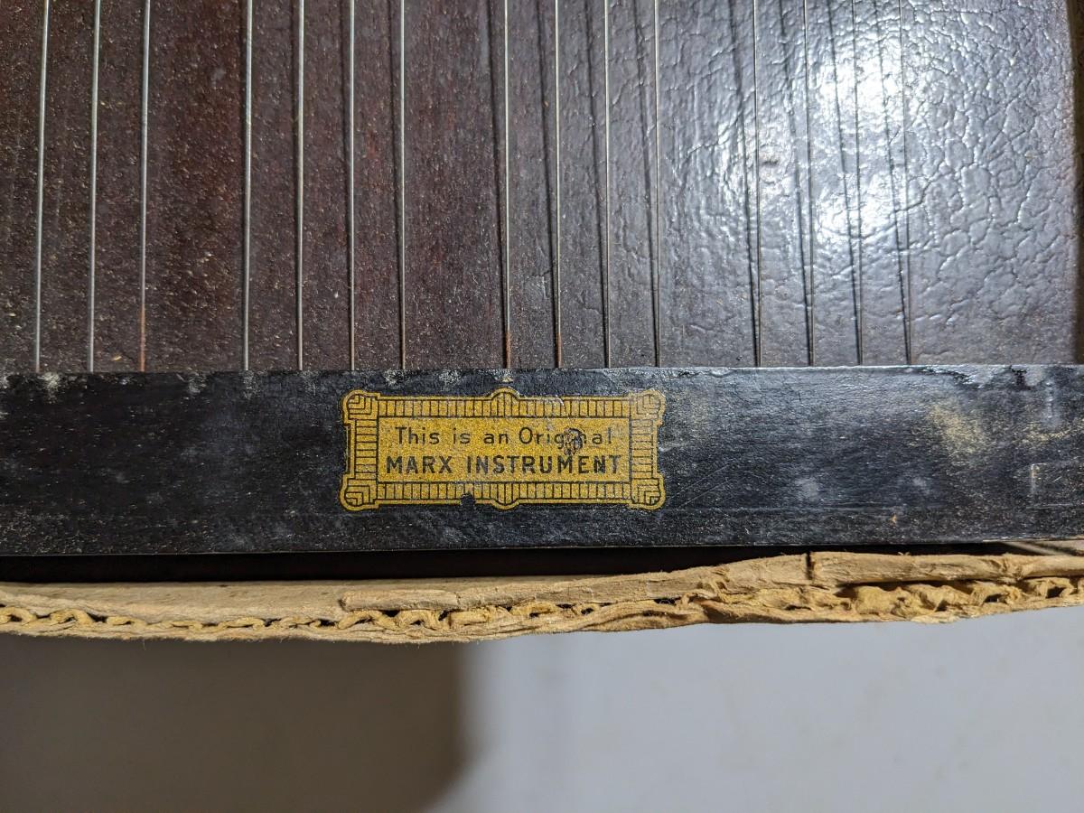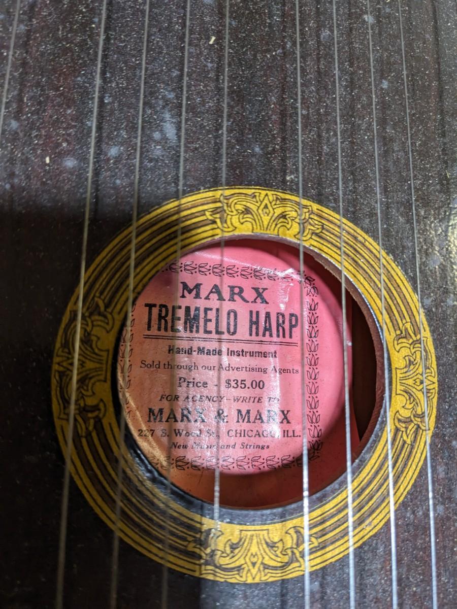 This harp does not appear to have been used, if any, minimally. This is a string tremolo harp by Marx and Marx out of Chicago. These were sold door to door and were traditionally played with a bow.