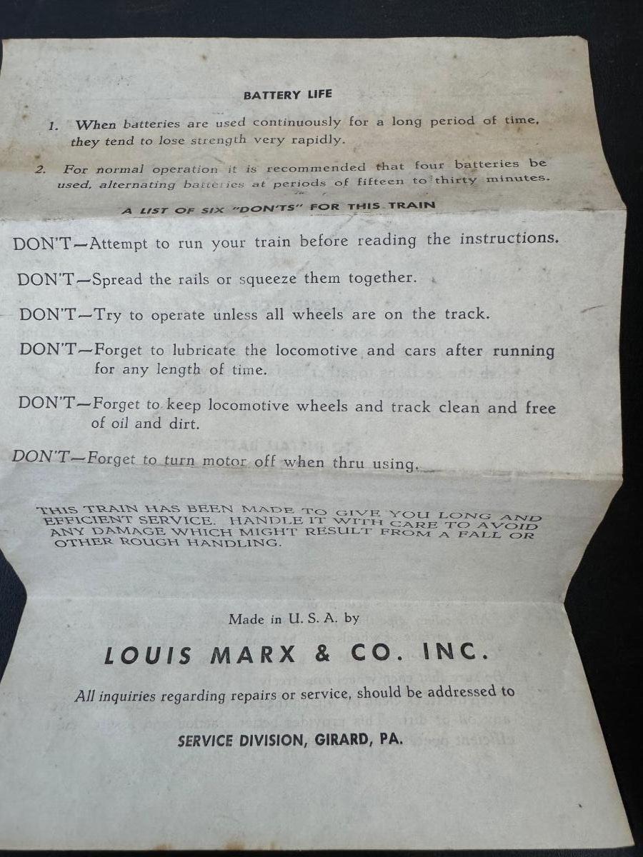 MARX Steam Type Electric Train Louis Marx and Co. USA