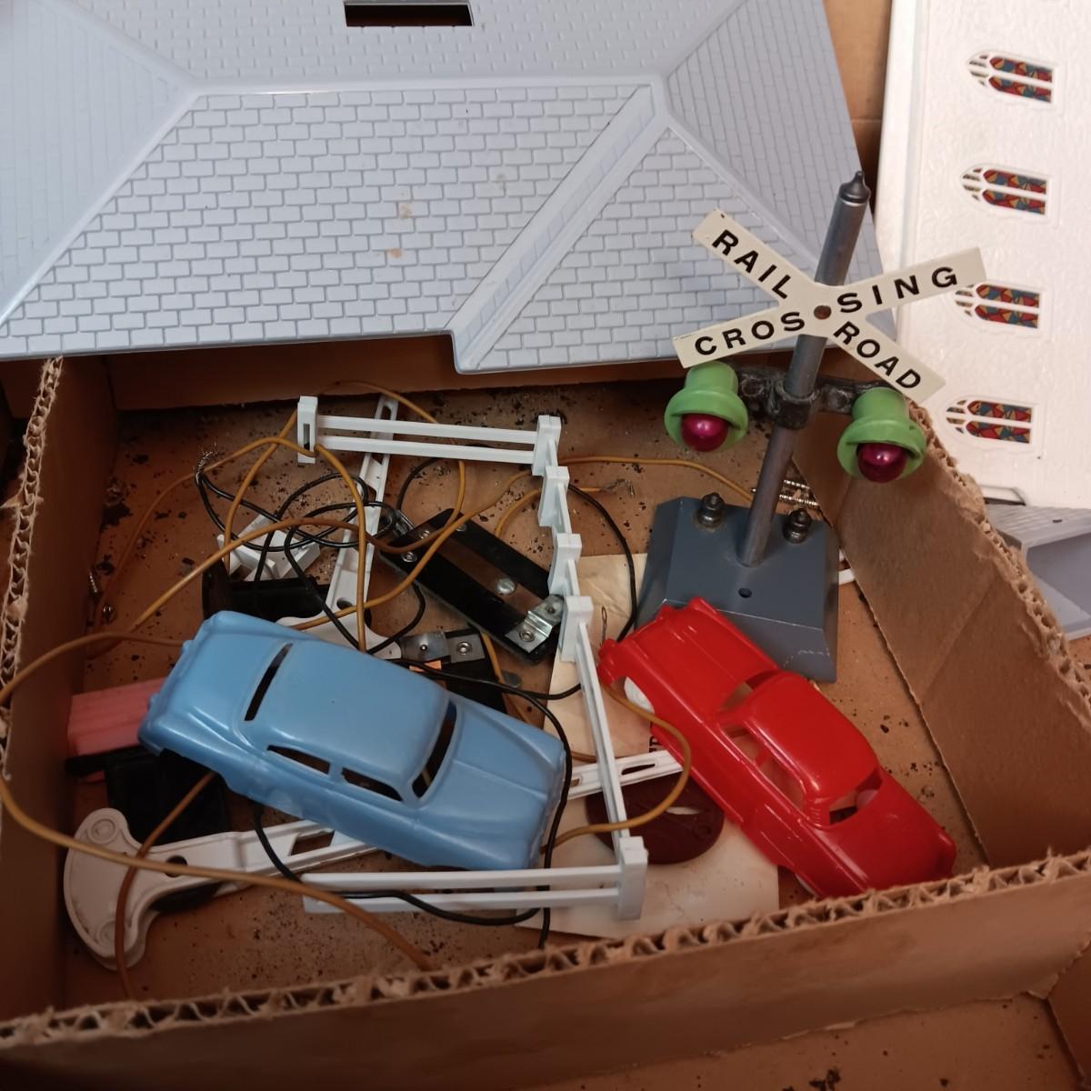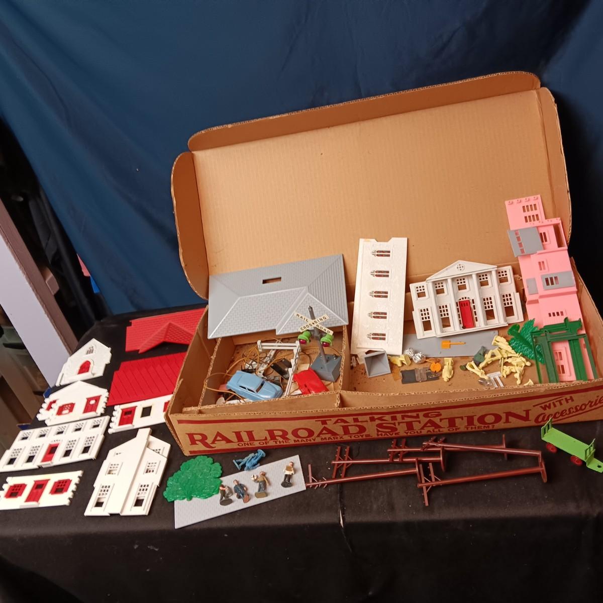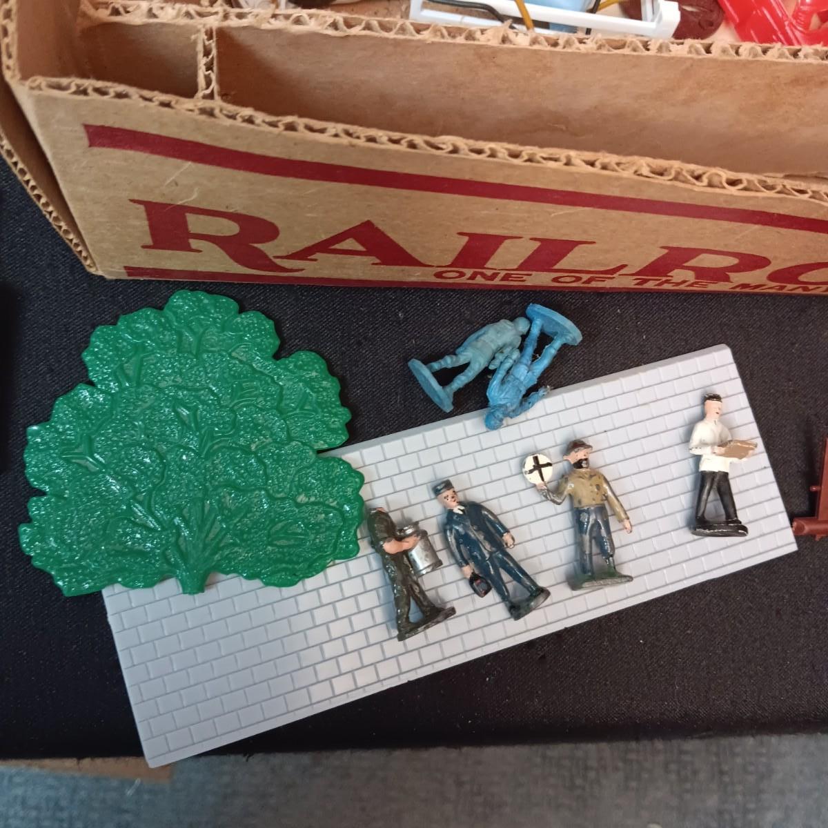 IT SEEMS THAT THERE ARE EXTRA PIECES THAT WEREN'T ORIGINALLY INCLUDED LIKE LEAD FIGURES, METAL RAILROAD CROSSING LIGHTS AND CARS. WE DON'T KNOW IF IT STILL TALKS