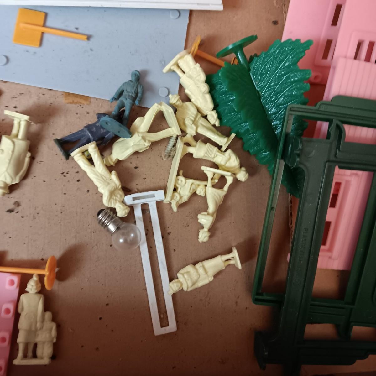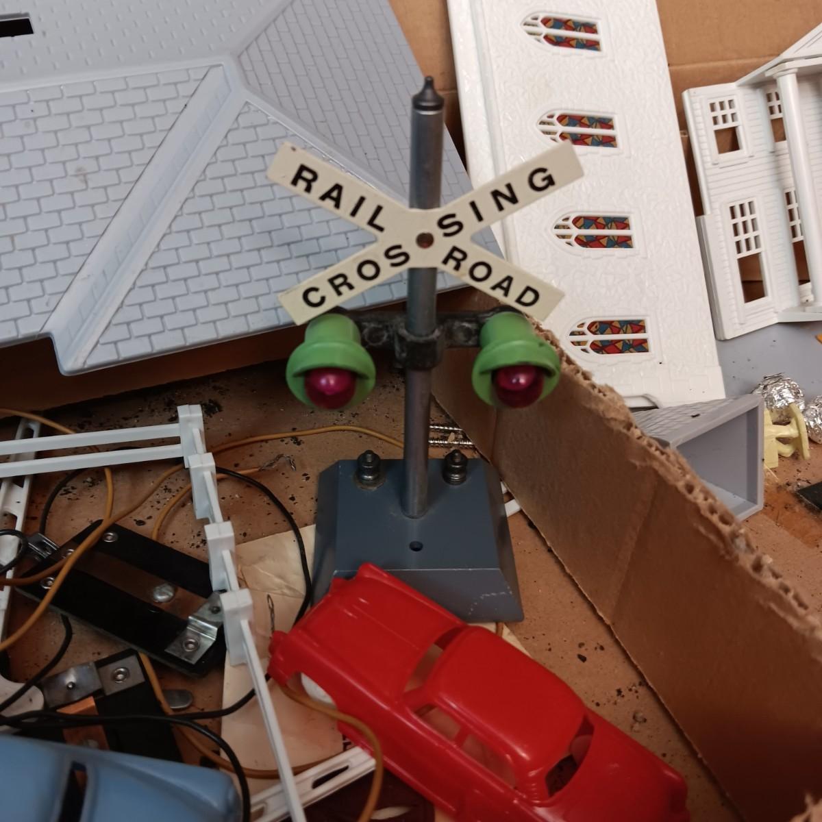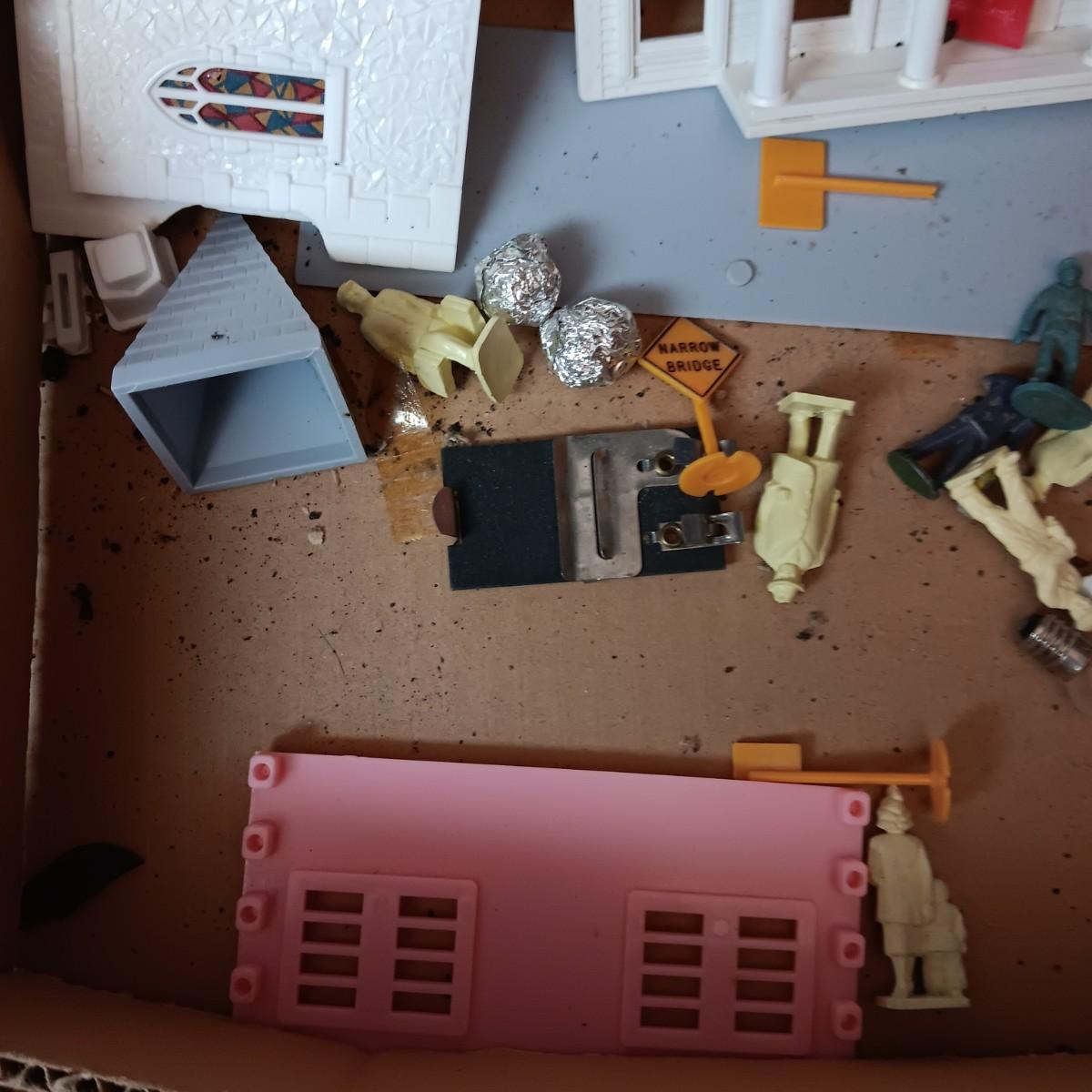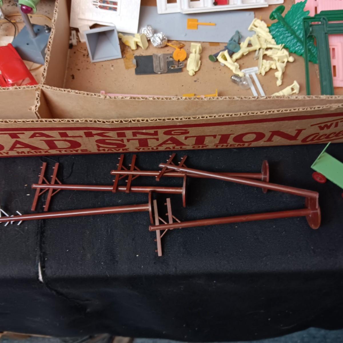 IT SEEMS THAT THERE ARE EXTRA PIECES THAT WEREN'T ORIGINALLY INCLUDED LIKE LEAD FIGURES, METAL RAILROAD CROSSING LIGHTS AND CARS. WE DON'T KNOW IF IT STILL TALKS