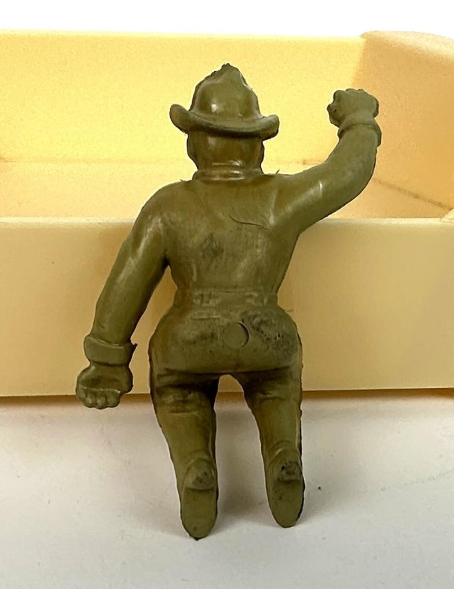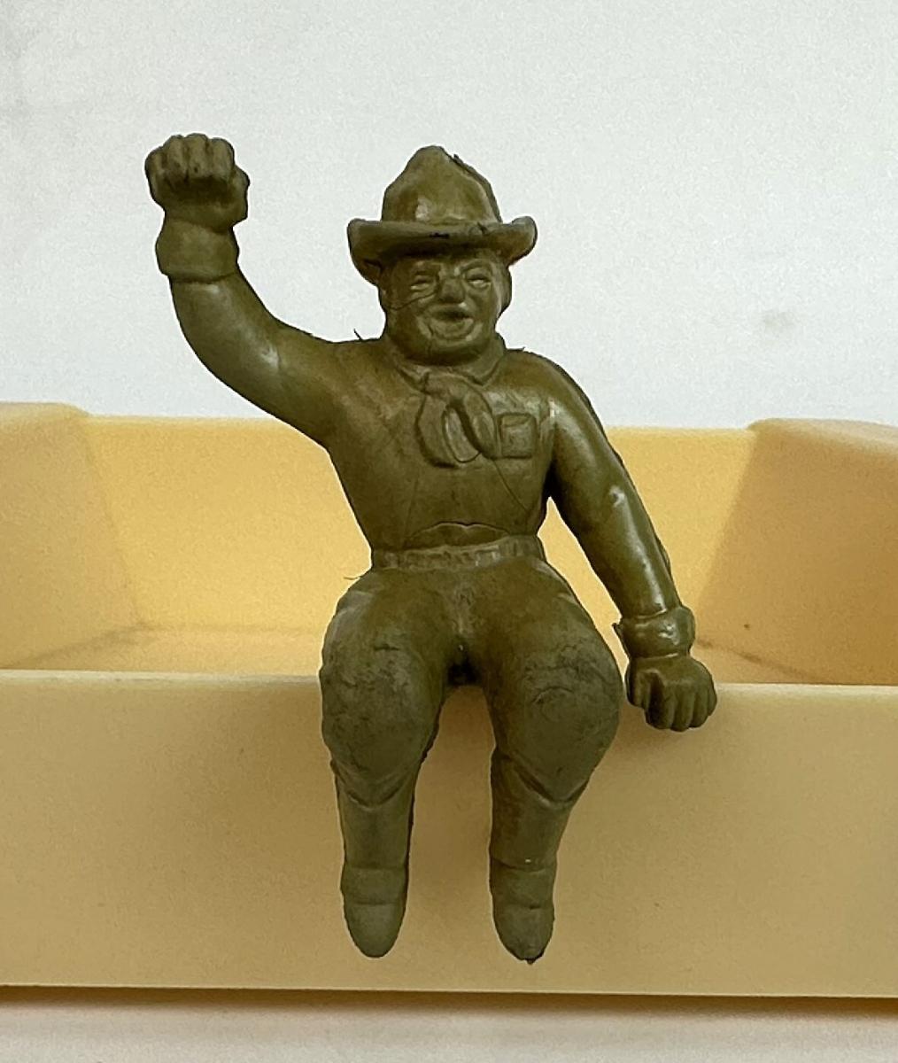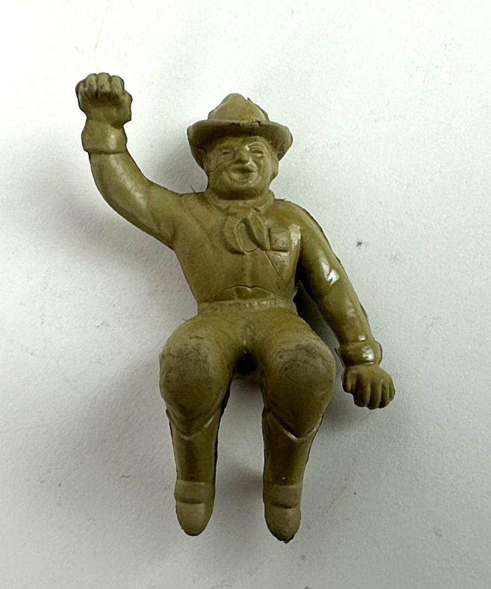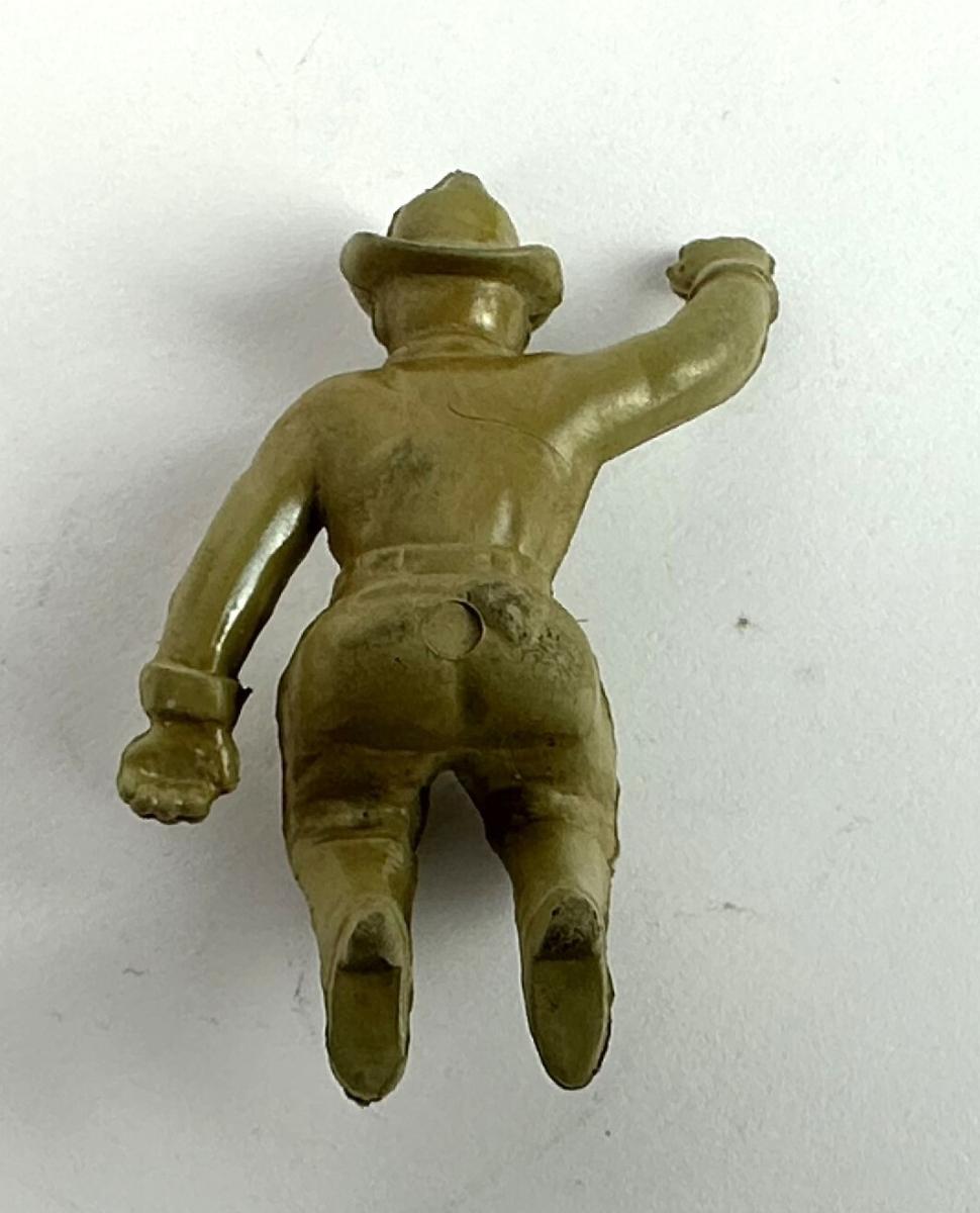 Marx "Chubby" cowboy found in the early 1950s western playsets..60mm...Made of a rubber like vinyl...Sitting with right arm up...as shown