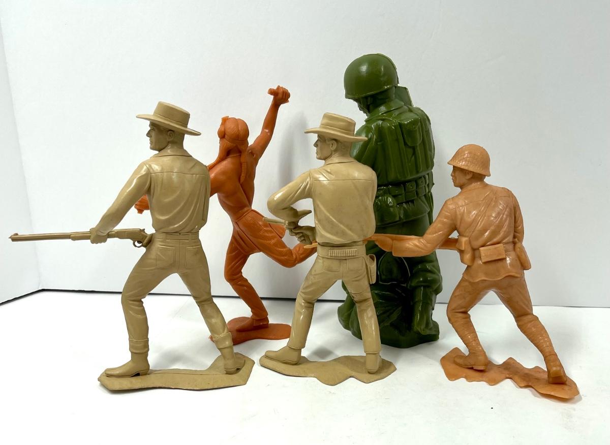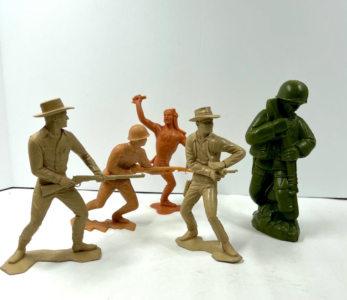 Cool lot of Marx figures. As you can see they’re all in great condition except the Indian. He has lost his feathers and his hatchet/ knife , but I added him anyway. Just look at that face! Please see all pics. All vintage items show signs of age and wear