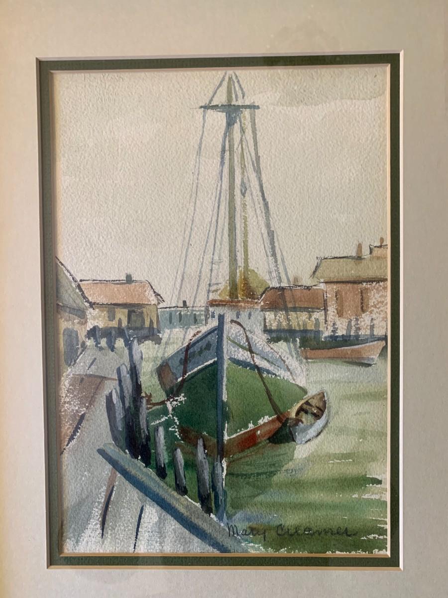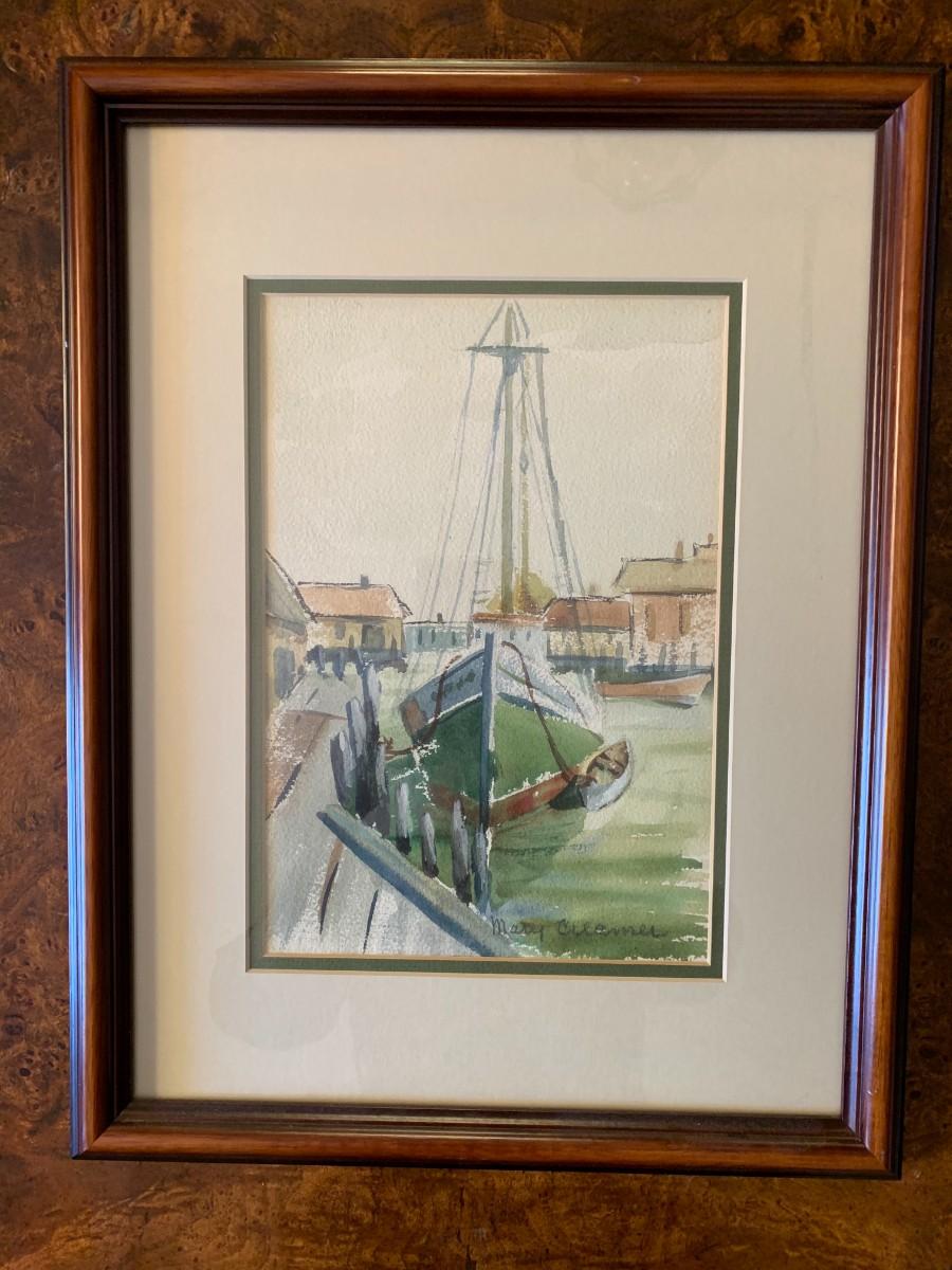 A timeless painting of a sailboat at the dock. Scroll down to read Mary Creamer's bio. \/