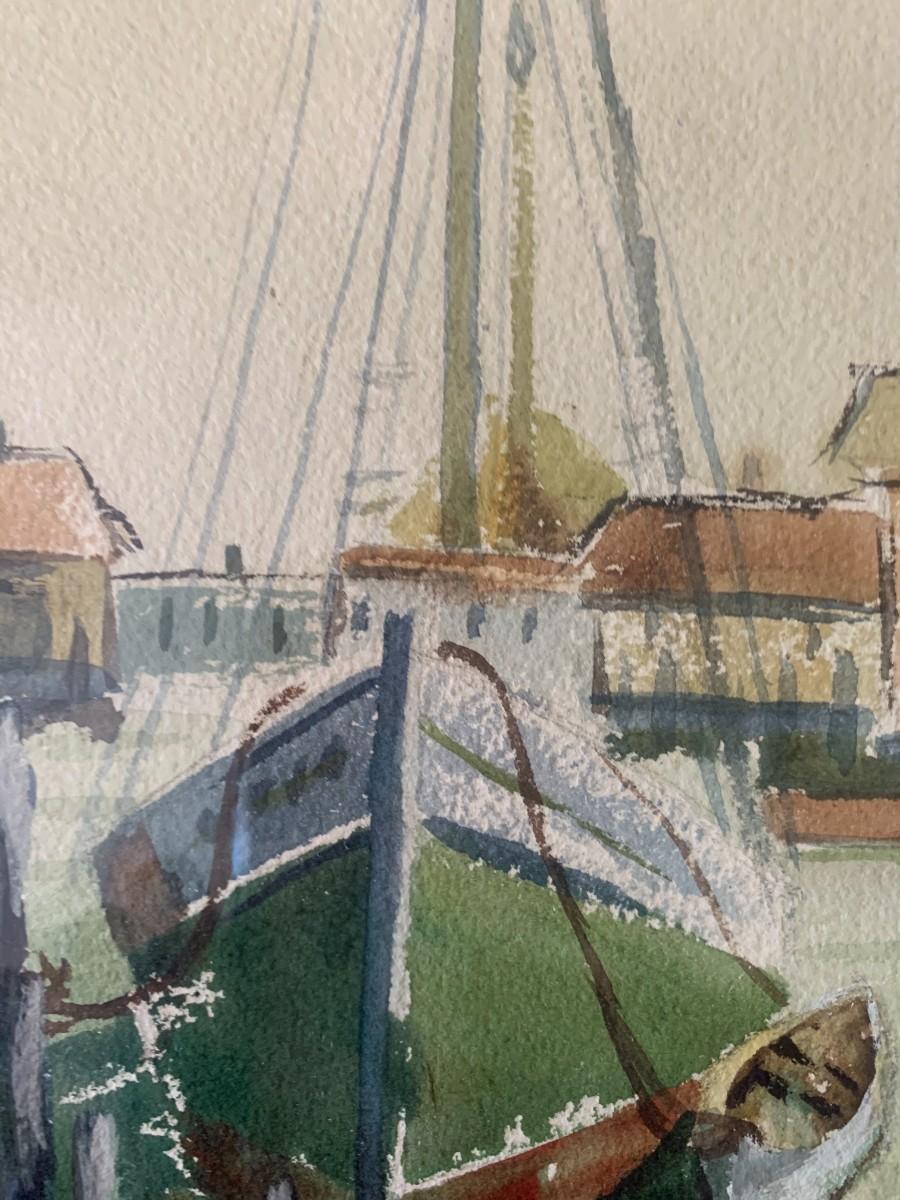 Having moved to Los Angeles in 1932, Foster taught at the Chouinard School of Art and also gave private classes in his own studio: it is presumably there that Creamer took further training from him. Both were active members of the California Arts Association (Los Angeles), as was the younger artist and teacher Nell Walker Warner (1891-1970). Creamer doubtless knew Warner during the latter's years as a young teacher in the Los Angeles area, and perhaps also from their common interests harbor scenes: both had traveled widely, including to Europe but also visiting Gloucester to paint, and when Warner moved north to the ocean-side art colony of Carmel CA in 1952, Creamer spent time with her there.(8)
