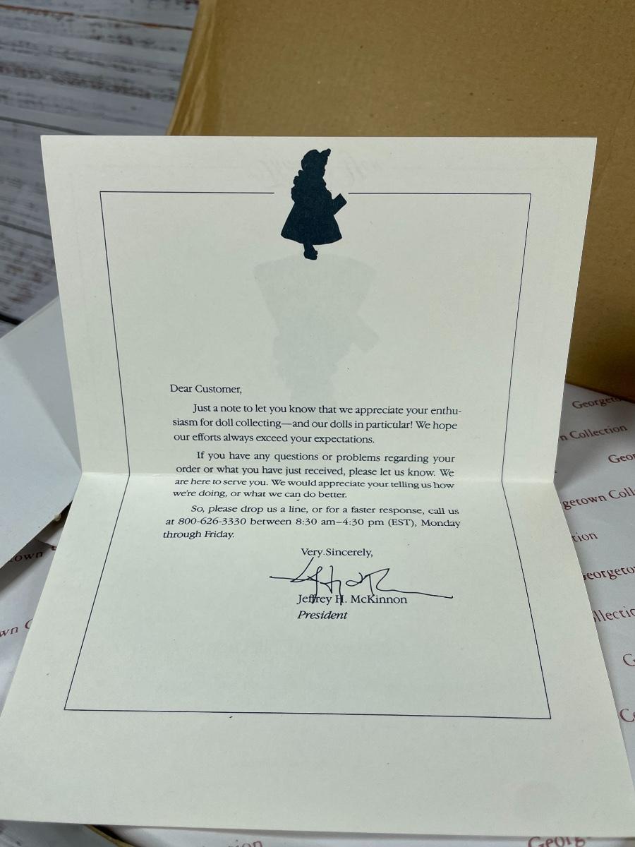 Doll is in perfect condition. It comes in it’s original packaging and has not been removed. This is a exclusive porcelain hand painted doll. The collection that this doll is from is titled “Yesterday’s Dreams.”