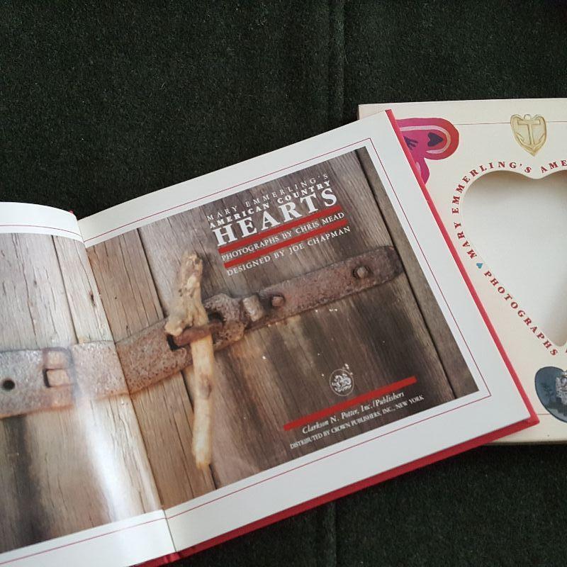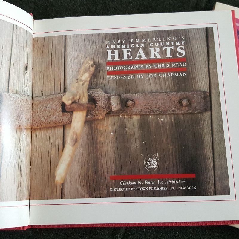 This auction lot is for copy of Mary Emmerling's American Country Hearts Book with photographs by Chris Mead. This much sought after compilation of the gatherings of Mary Emmerling is one of those just-fun-to-have books. This book was published in 1988, it is hard-bound with a cloth cover and comes in a matching book sleeve. The book is in good condition overall, however, the sleeve has a light coffee mug ring imprint - see photo.