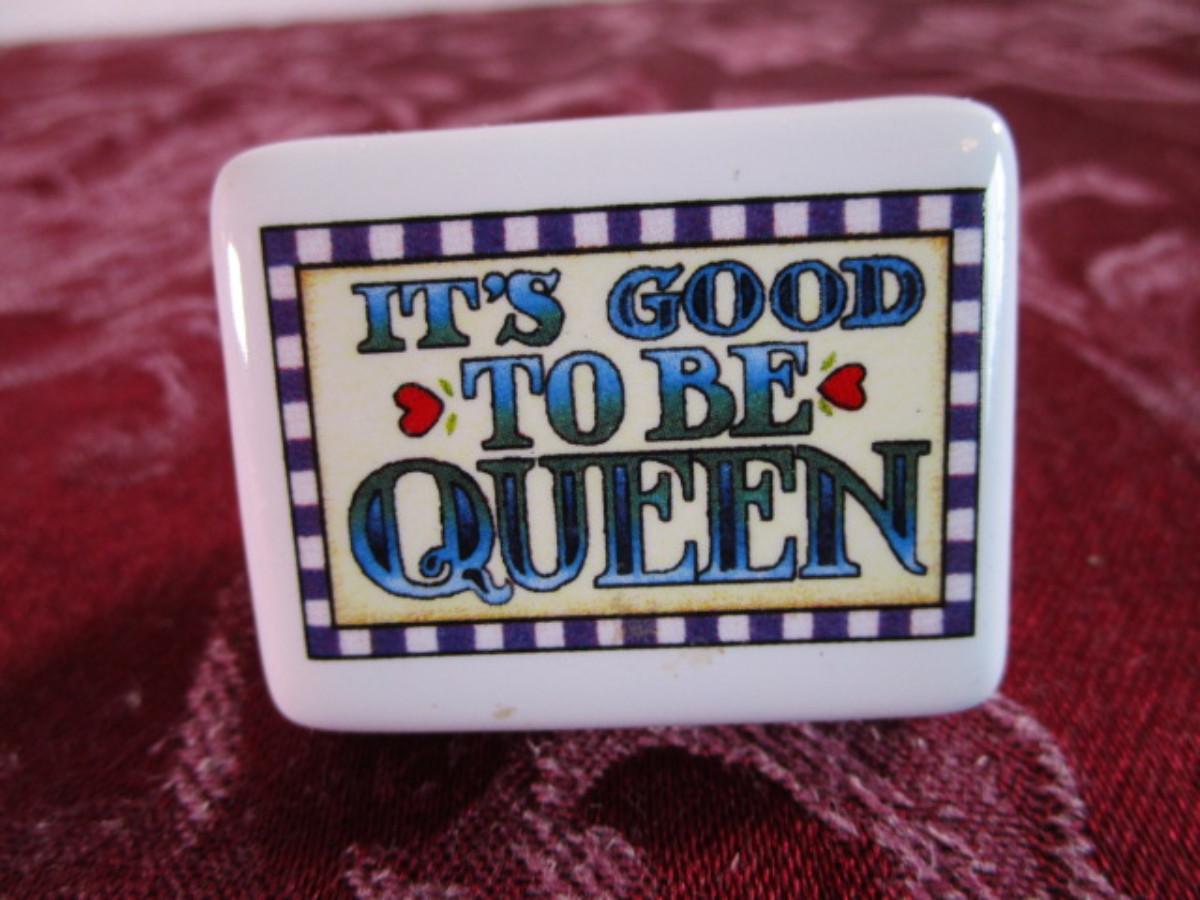 2" x 1-1/2" inscription says "It's Good to Be Queen"