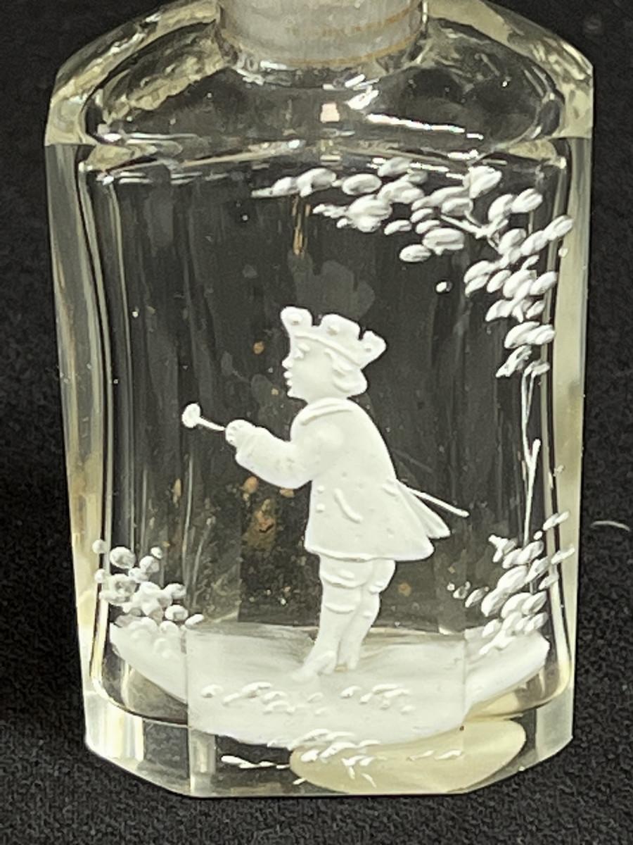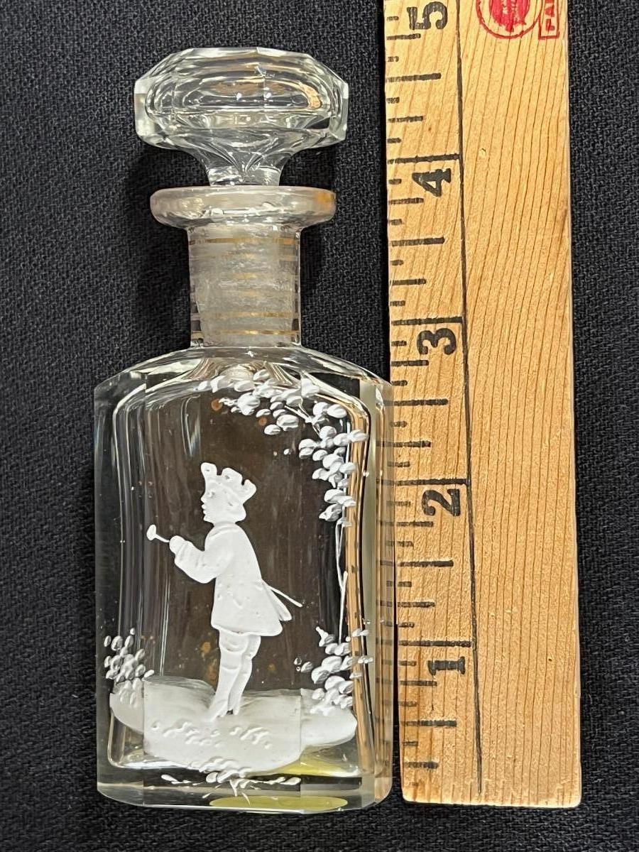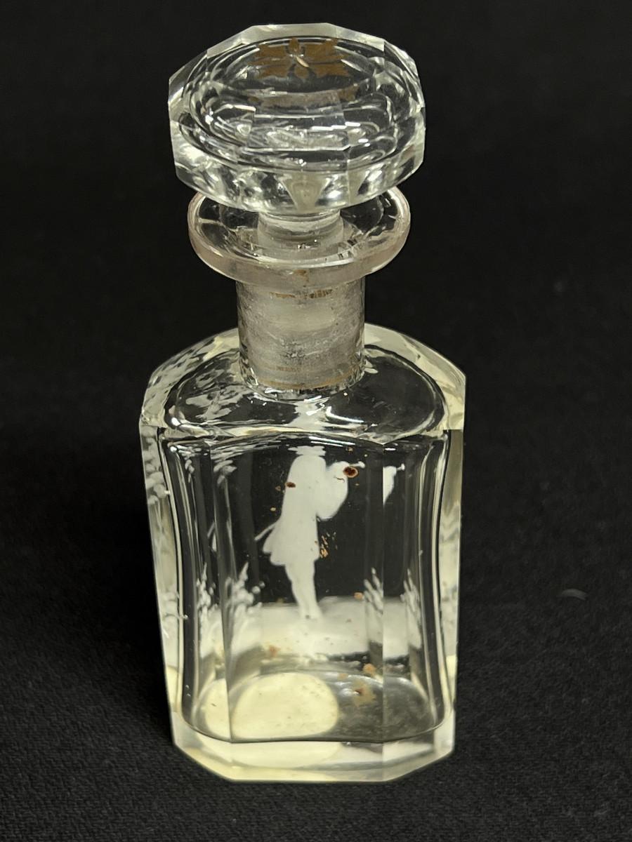 Mary Gregory Silhouette Figural Perfume Bottle marked "Sandwich" by original dealer - sticker left on