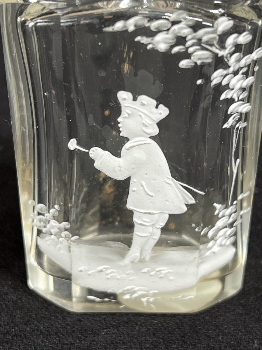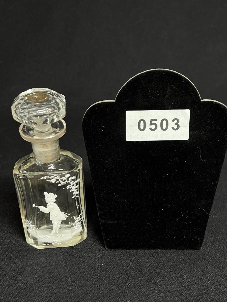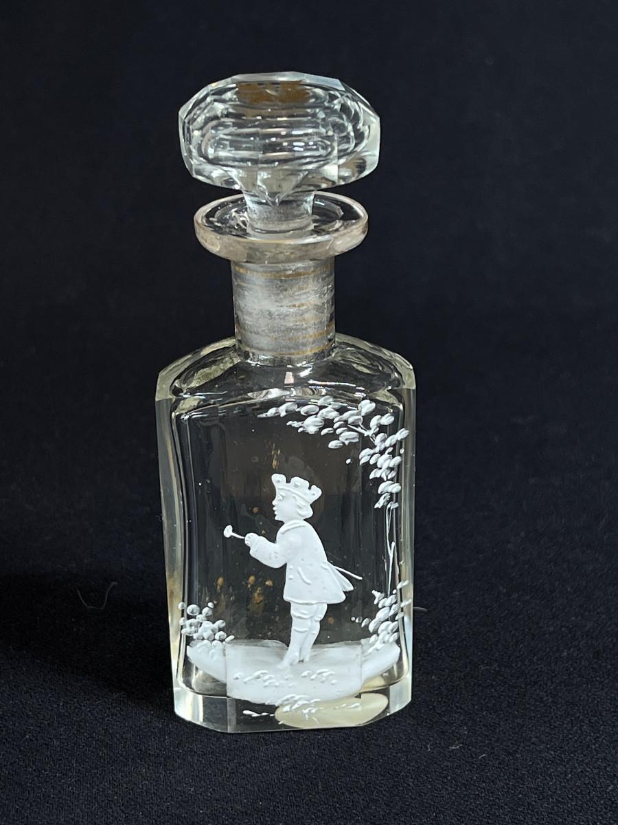 Mary Gregory Silhouette Figural Perfume Bottle marked "Sandwich" by original dealer - sticker left on