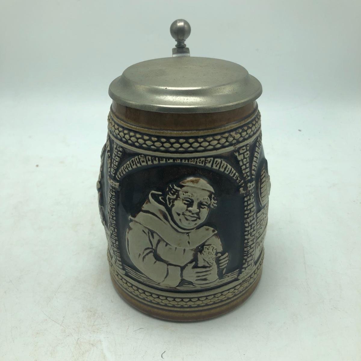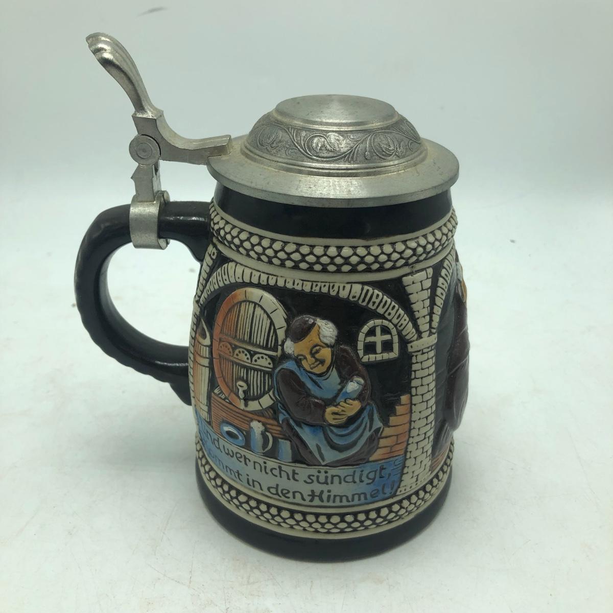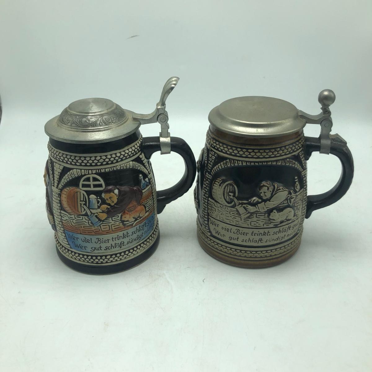 Lot includes a Marzi and Remy stein and a colored version stein with no makers mark. Steins measure 4.25” x 5.5” x 7”.
