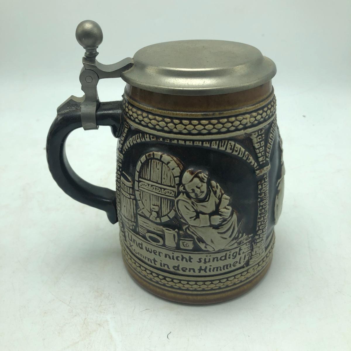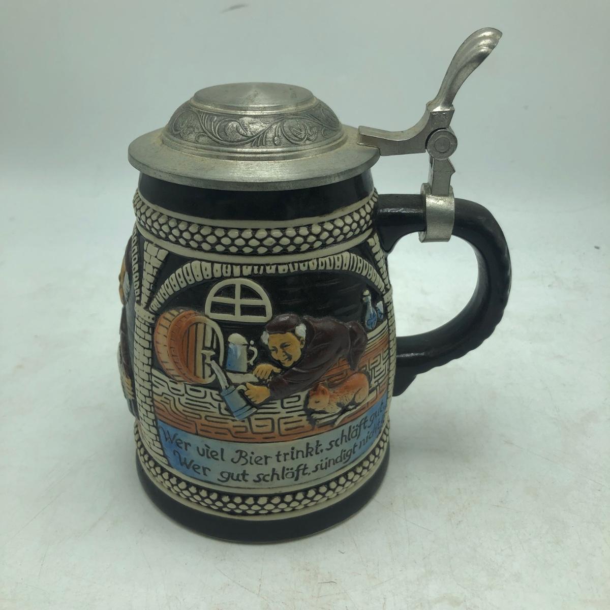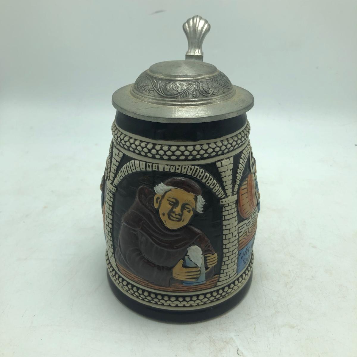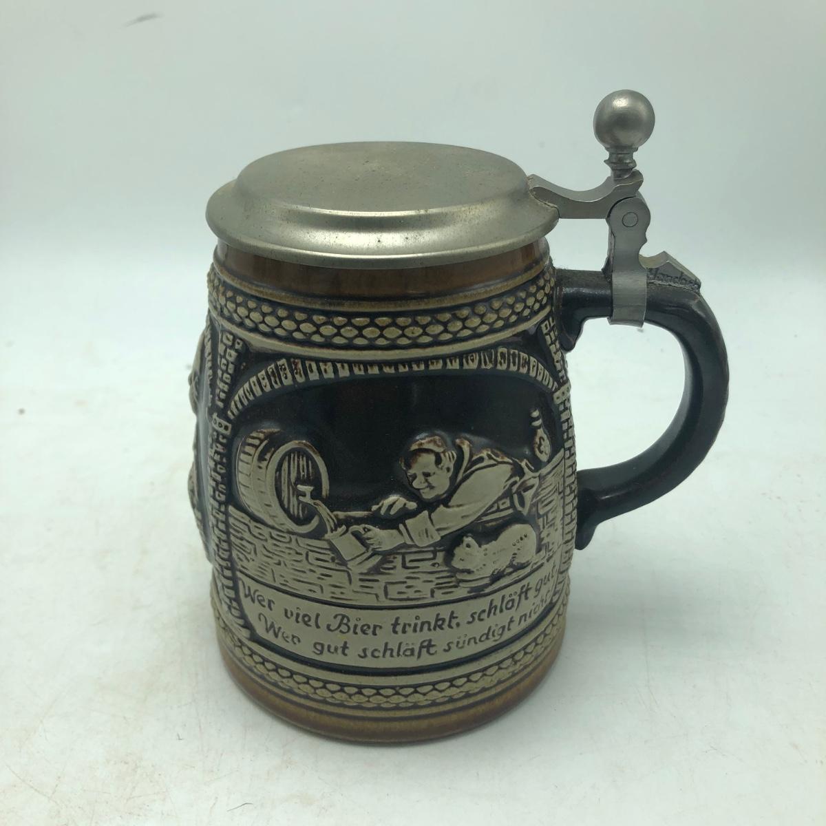 Lot includes a Marzi and Remy stein and a colored version stein with no makers mark. Steins measure 4.25” x 5.5” x 7”.