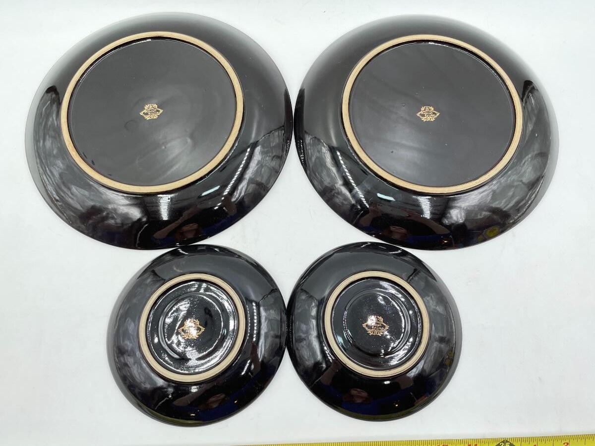 Two dinner plates, two sauces, three small salad plates, one shallow bowl. All in great condition although one plate does have a small chip on the edge as shown.